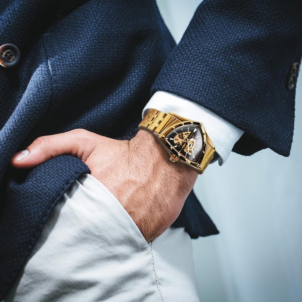 スケルトン部分から見える歯車の精密な動きを観察しているだけでも、つい魅了されてしまいます。