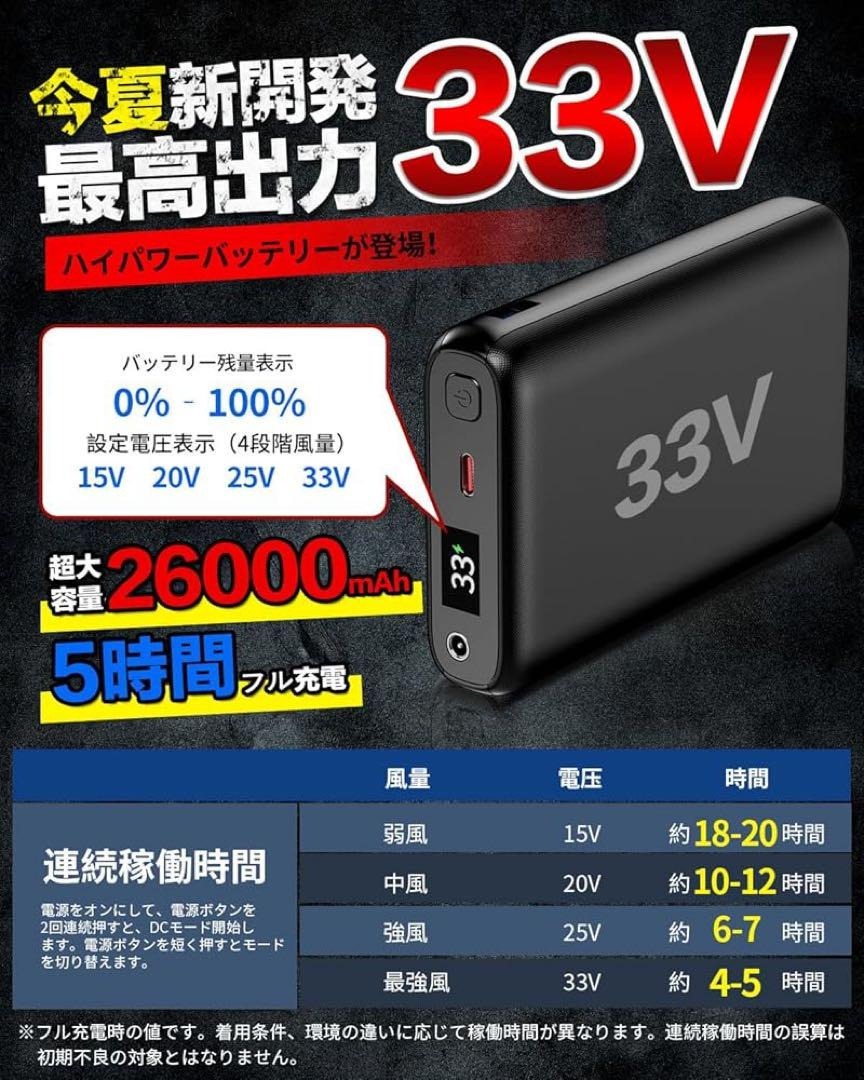 【2025業界超強・33V超高出力ファンバッテリーセット】