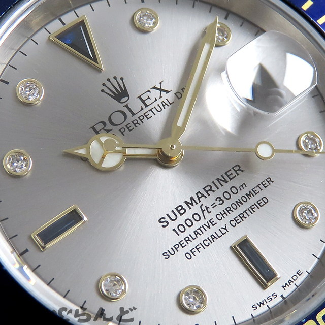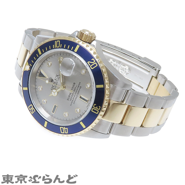 101800600 ロレックス サブマリーナーデイト16613SG F番 グレー SS YG ダイヤモンド オイスターブレス コンビ 腕時計 メンズ 自動巻 仕上済