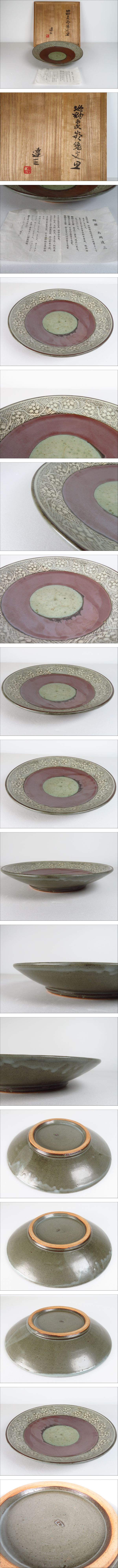 | 旧家整理品 地釉象嵌縄文皿 益子焼 人間国宝 島岡達三 飾皿 飾鉢 煎茶道具 作家 在銘 共箱 栞 骨董品 古美術品 直径27.3cm【712】 | ||