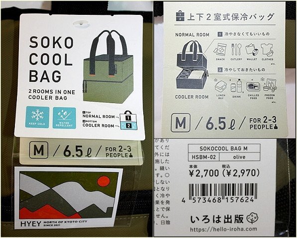 未使用 上下2室式 2段式 保冷バッグ SOKO COOL BAG オリーブ 6.5L Mサイズ コンパクト 撥水加工 いろは出版 買い物 レジャー アウトドア