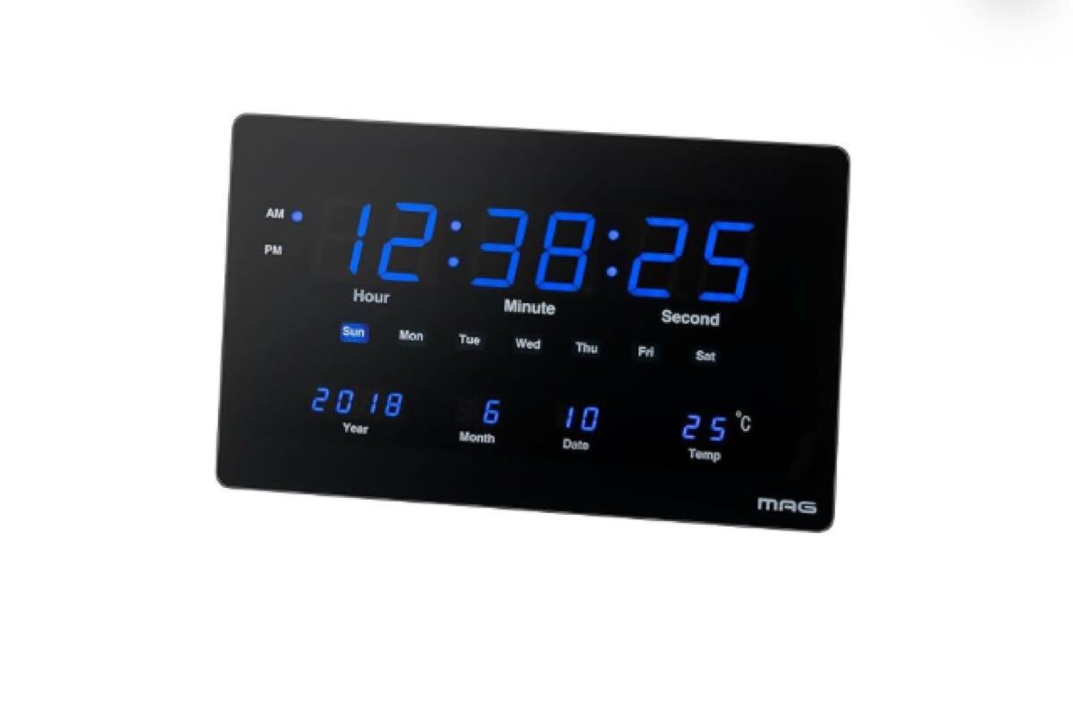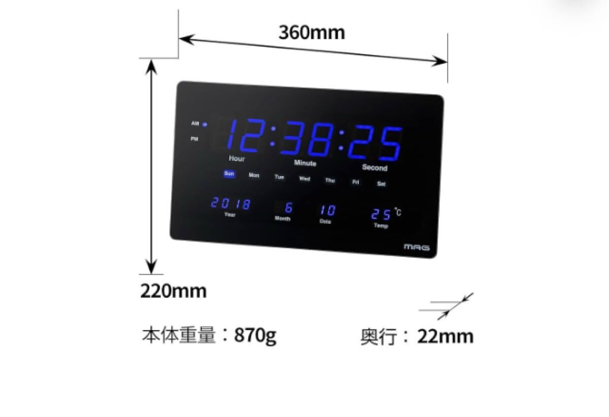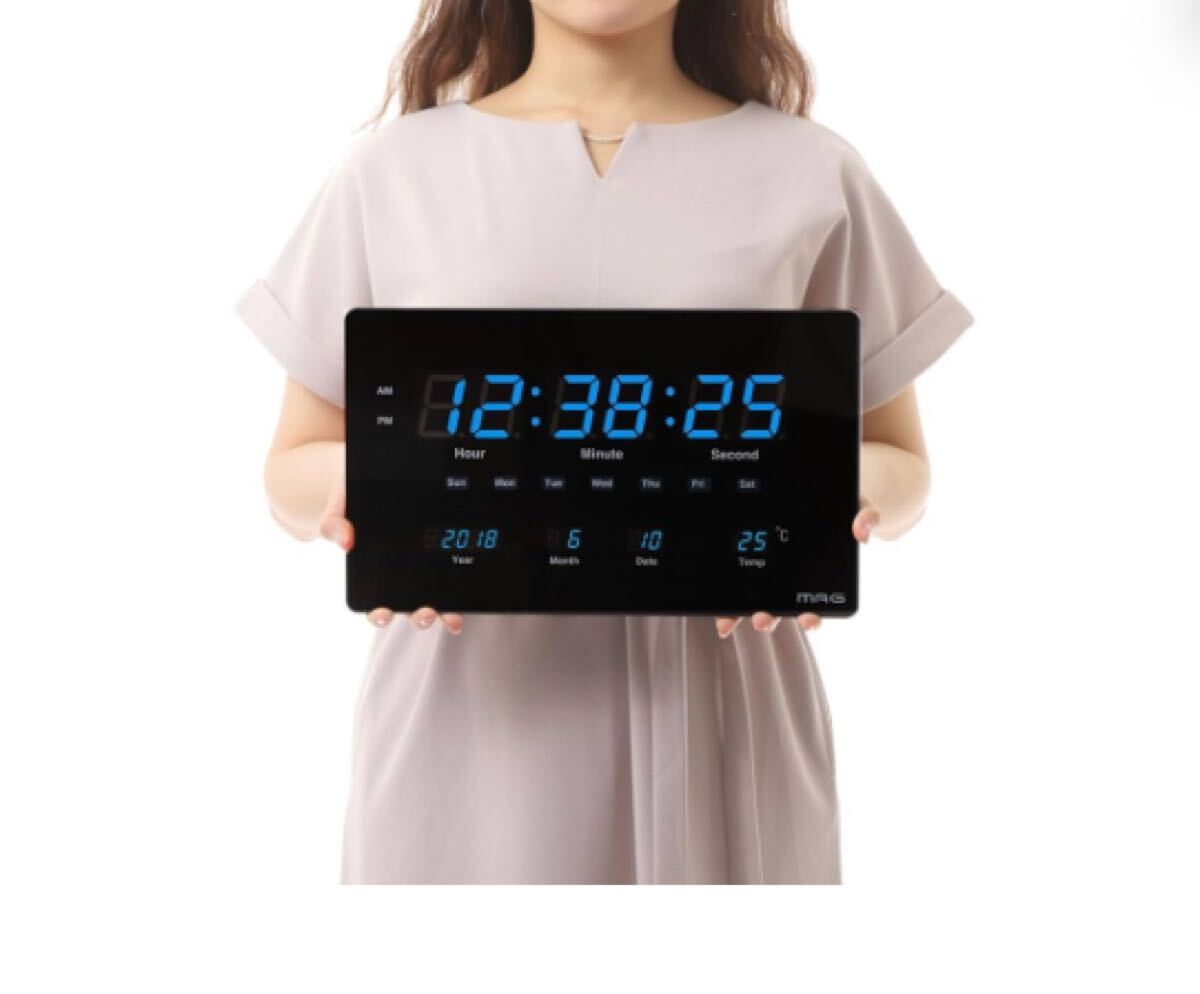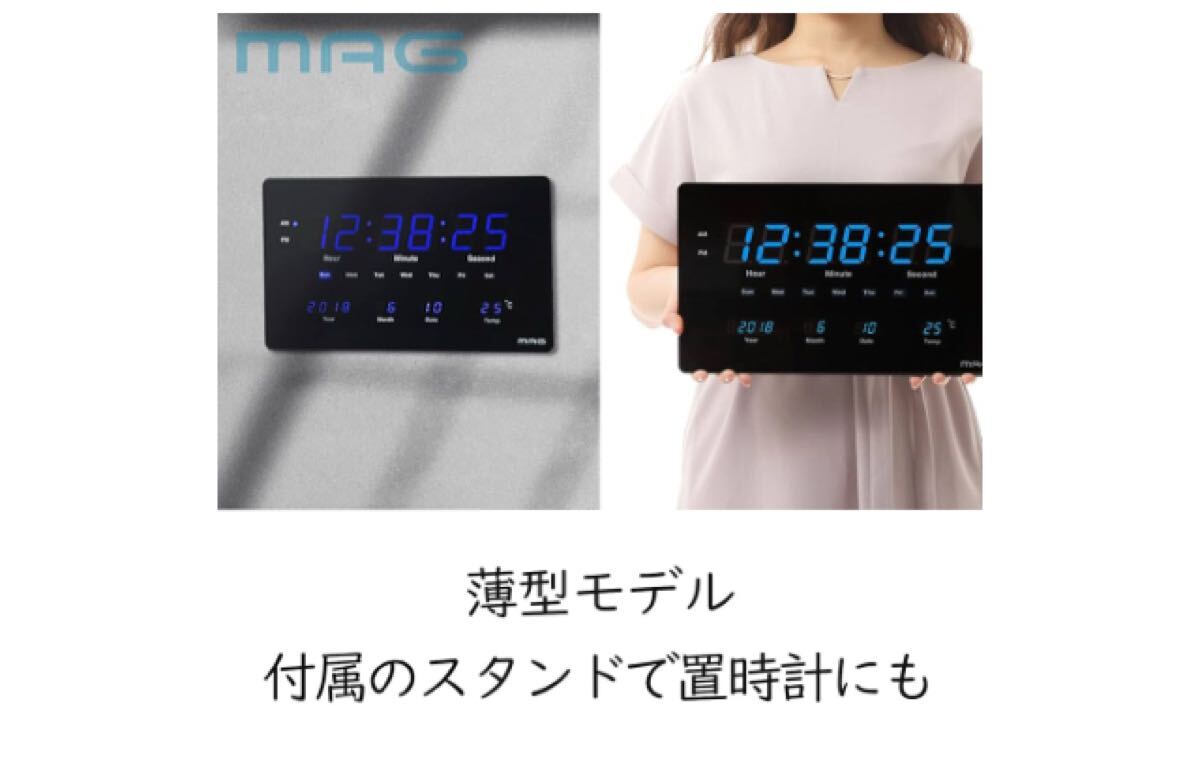 MAG(マグ) 掛け時計 LED デジタル デジブルー 温度 日付表示 置き掛け兼用 ブラック W-724BK