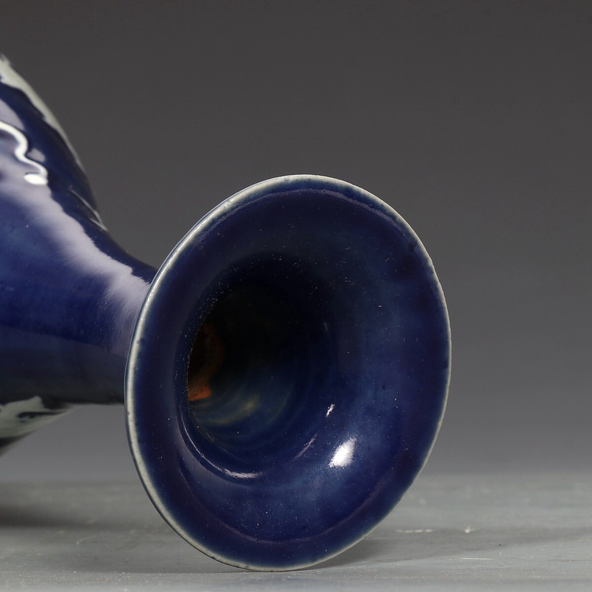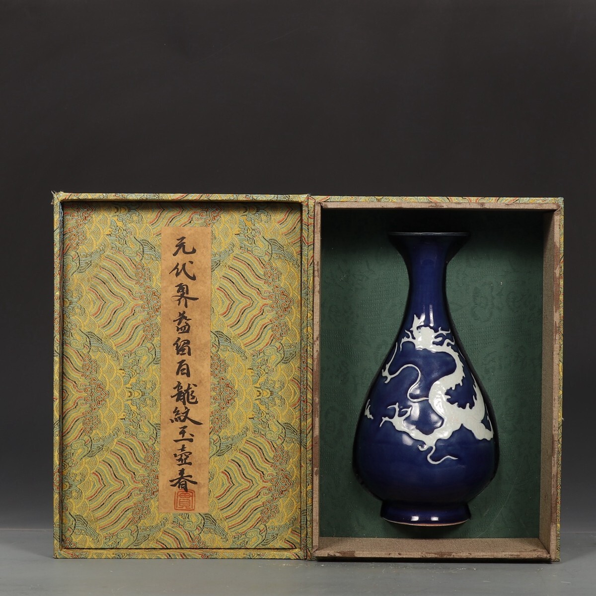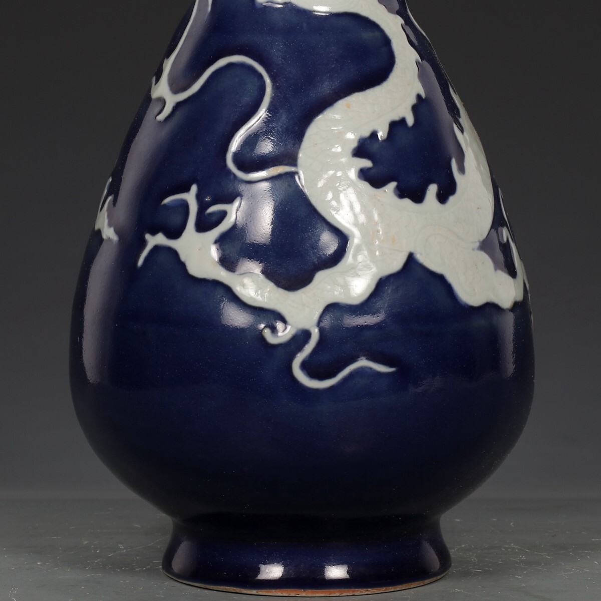 元代 陶磁器 霽藍留白龍紋 玉壺春瓶【仁】染付 置物擺件 古賞物 古美術 中国古玩 蔵出