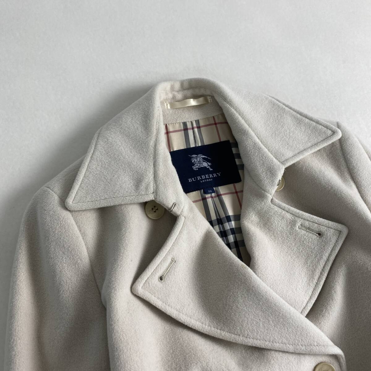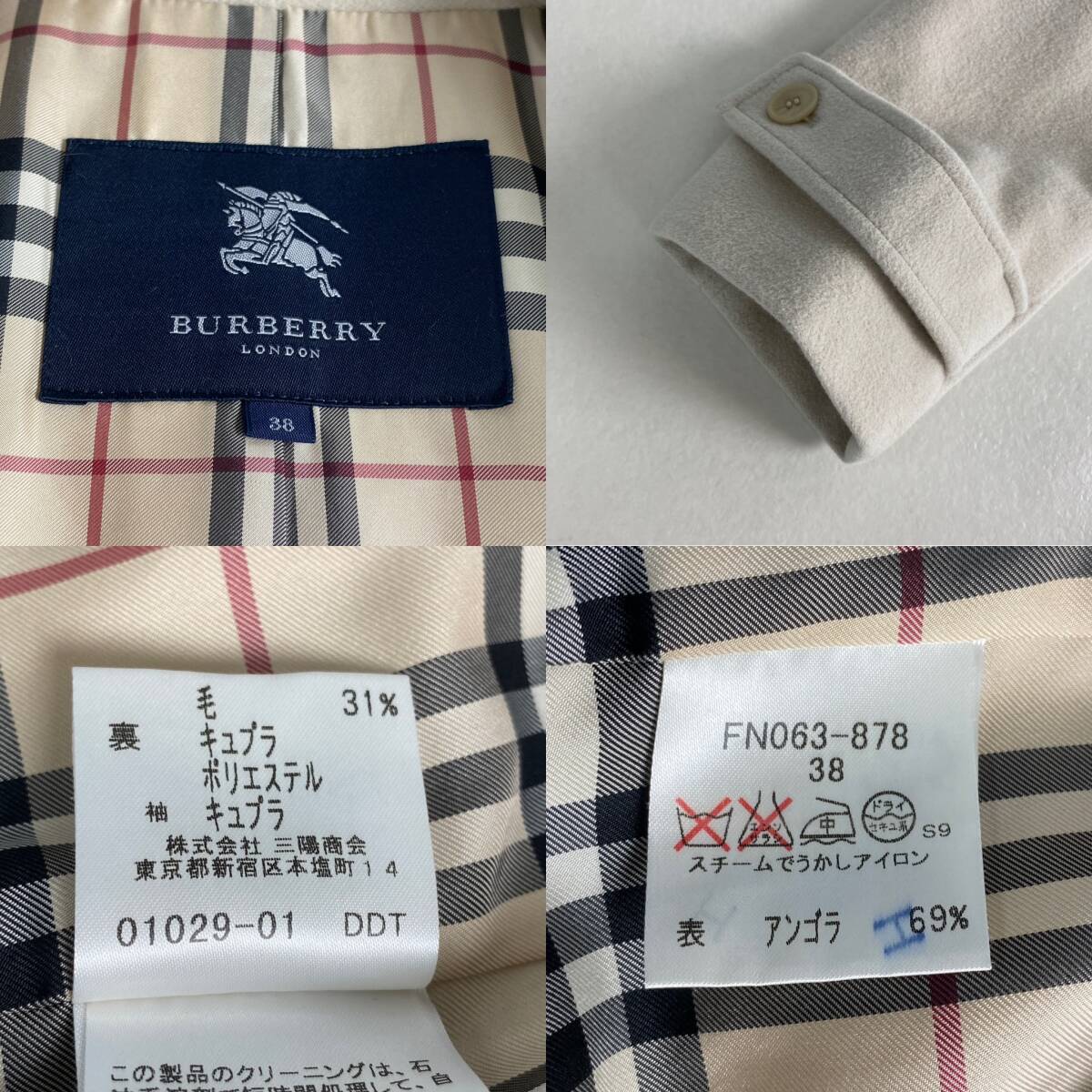 バーバリー ロンドン トレンチコート アンゴラ混 ノバチェック ホワイトベージュ ベルト付き ベルテッドコート 38(M)・L相当