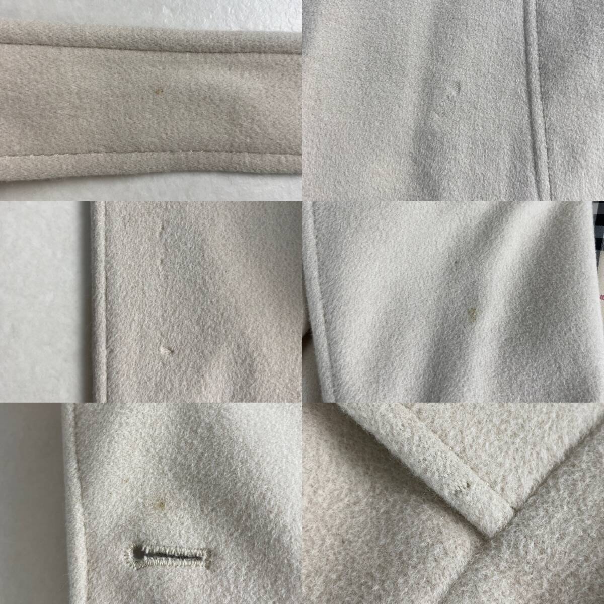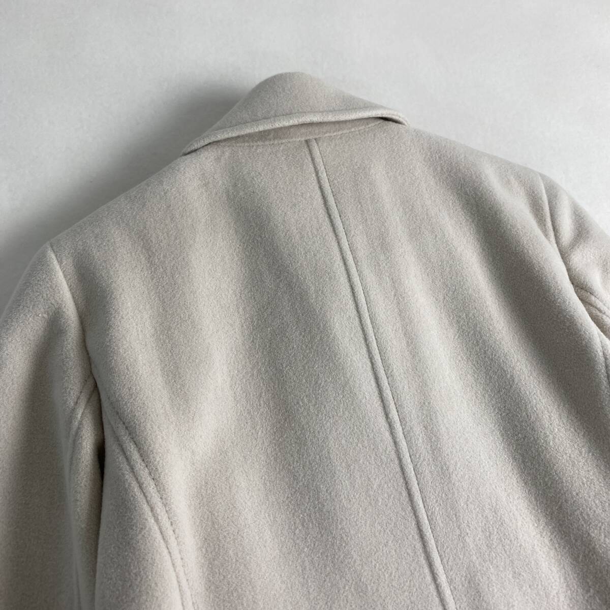 【ポイント】アンゴラ混 ノバチェック ホワイトベージュ ベルト付き ベルテッドコート 38(M)・L相当