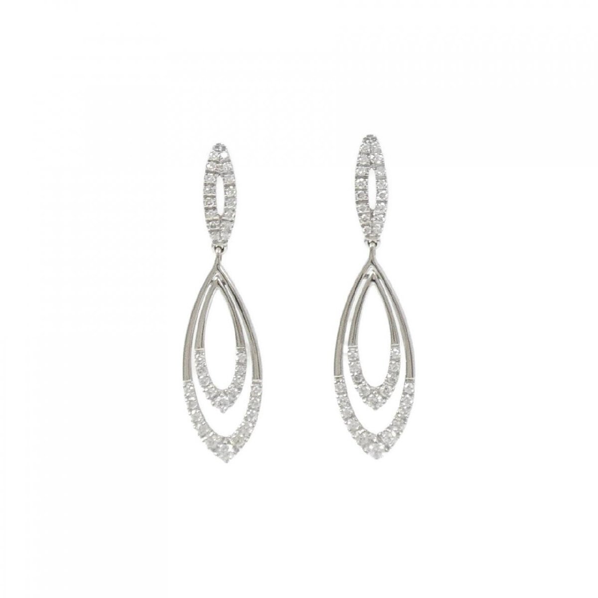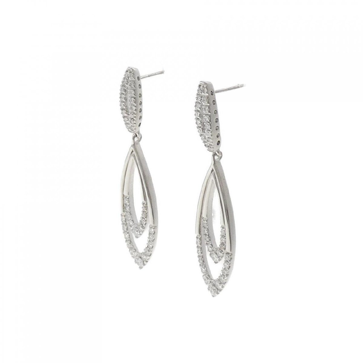 クリアに煌くダイヤモンドがセッティング。 エレガントなモチーフが耳元を上品に仕上げます。
