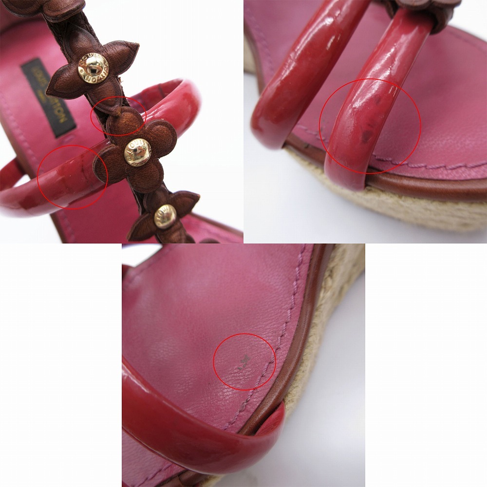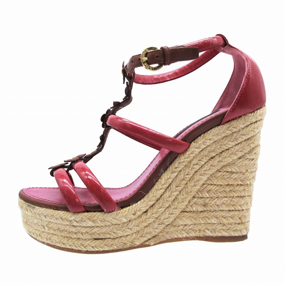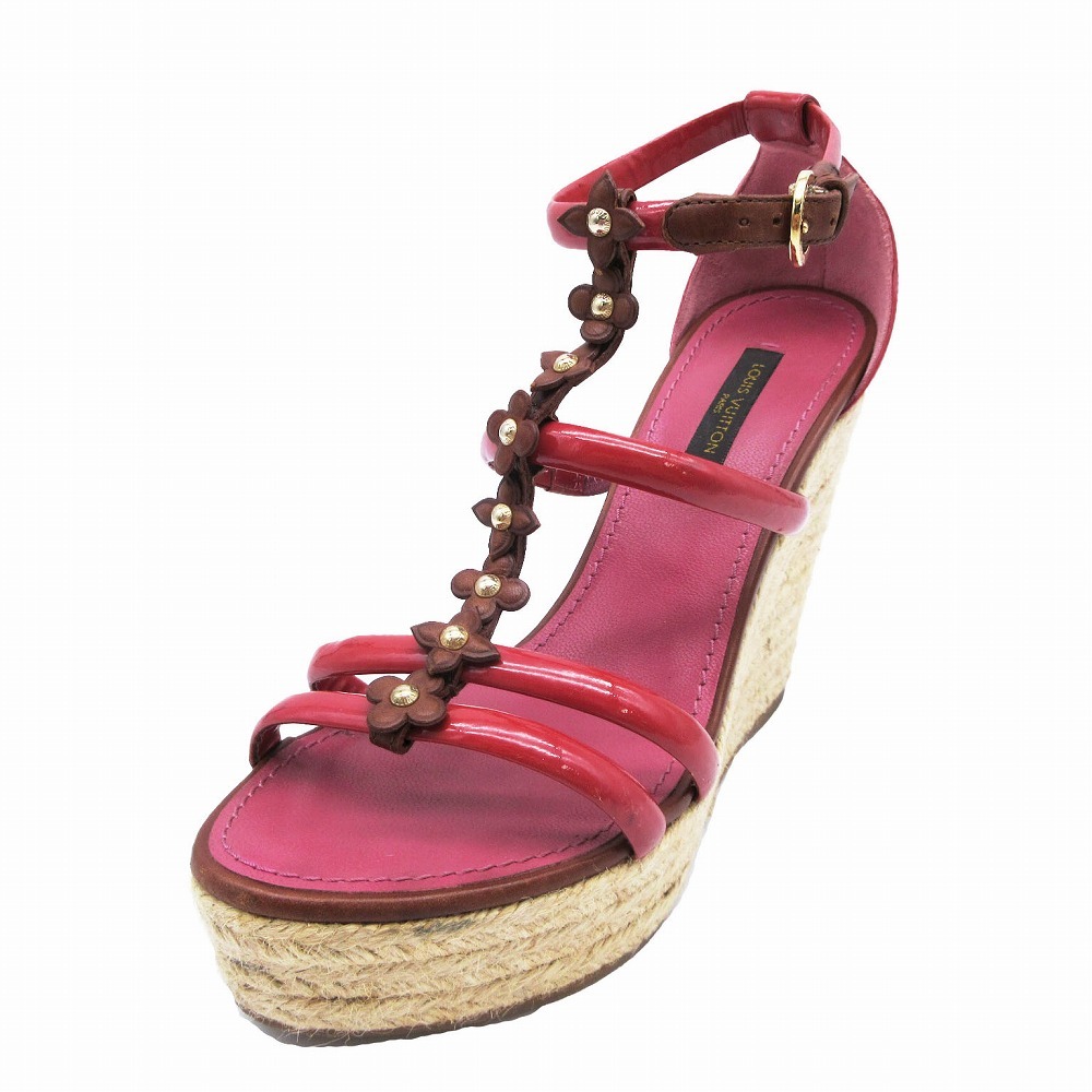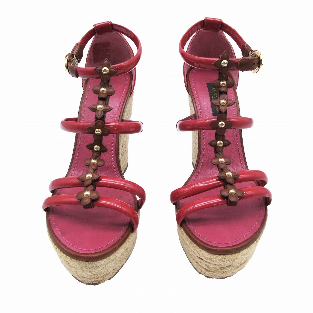 | 【LOUIS VUITTON ルイヴィトン モノグラム フラワー サンダル エスパドリーユ ウェッジソール 35.5 22.5cm レッド レディース】 | |
