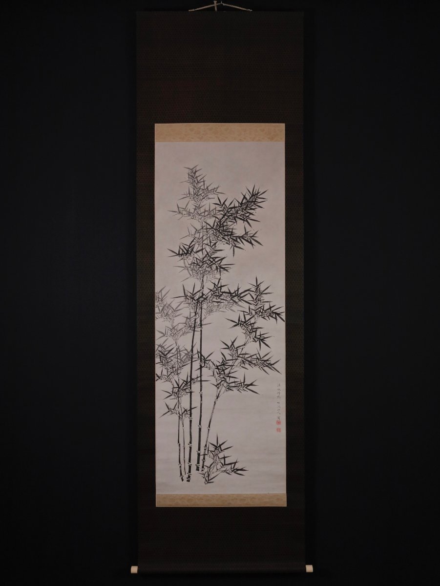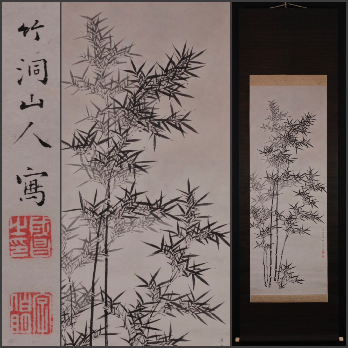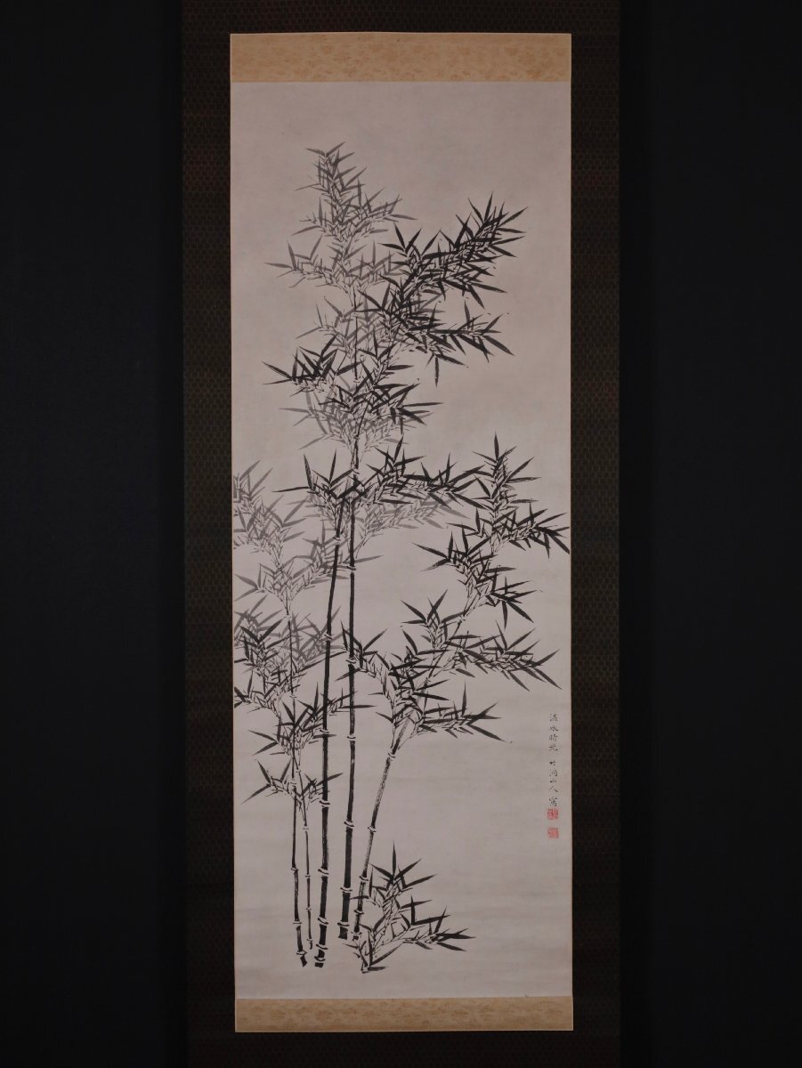 【模写】吉】12584 中林竹洞 竹図 尾張の人 愛知県 中国画 茶掛け 茶道具 掛軸 掛け軸 骨董品