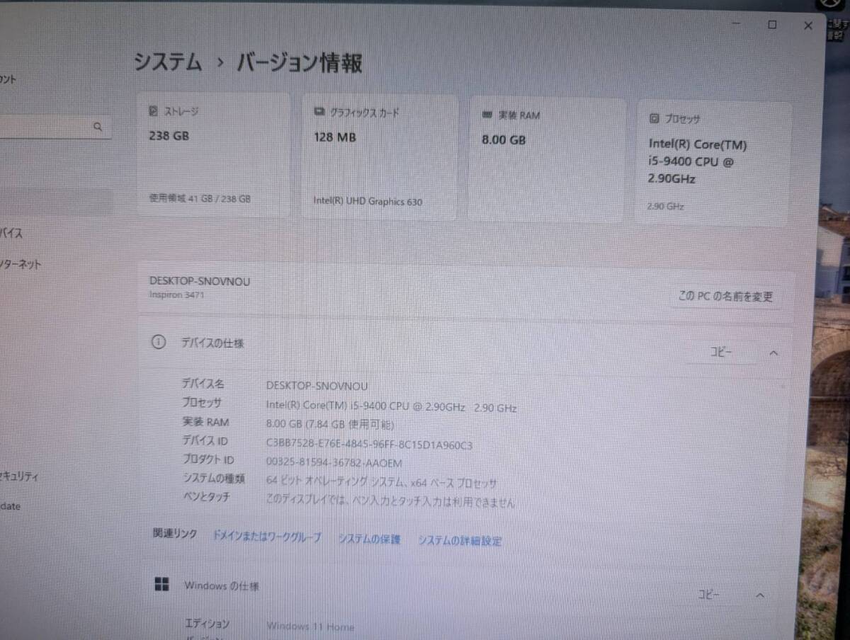 ☆最新Windows11☆ DELL Inspiron 3471 第9世代 i5-9400 メモリ8GB SSD256GB DVDドライブ Wi-Fi Office2021 デスクトップパソコン R7G19