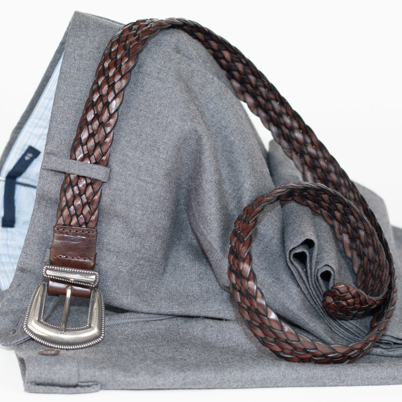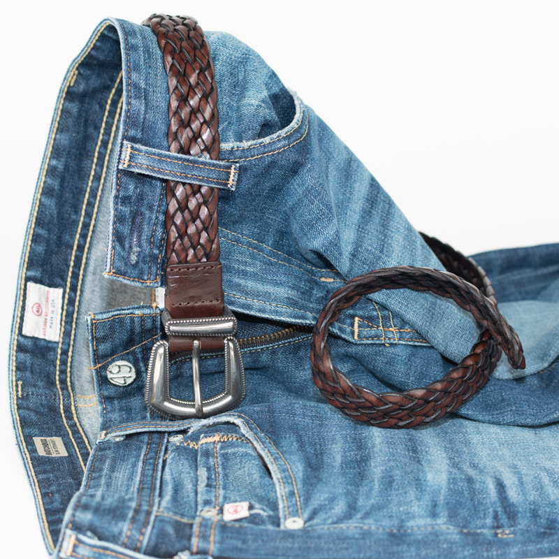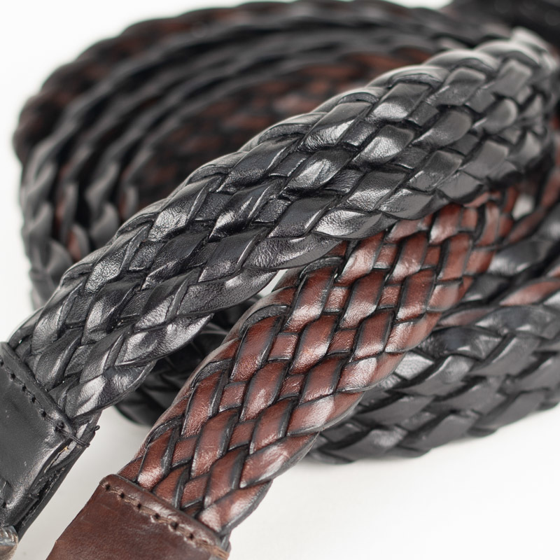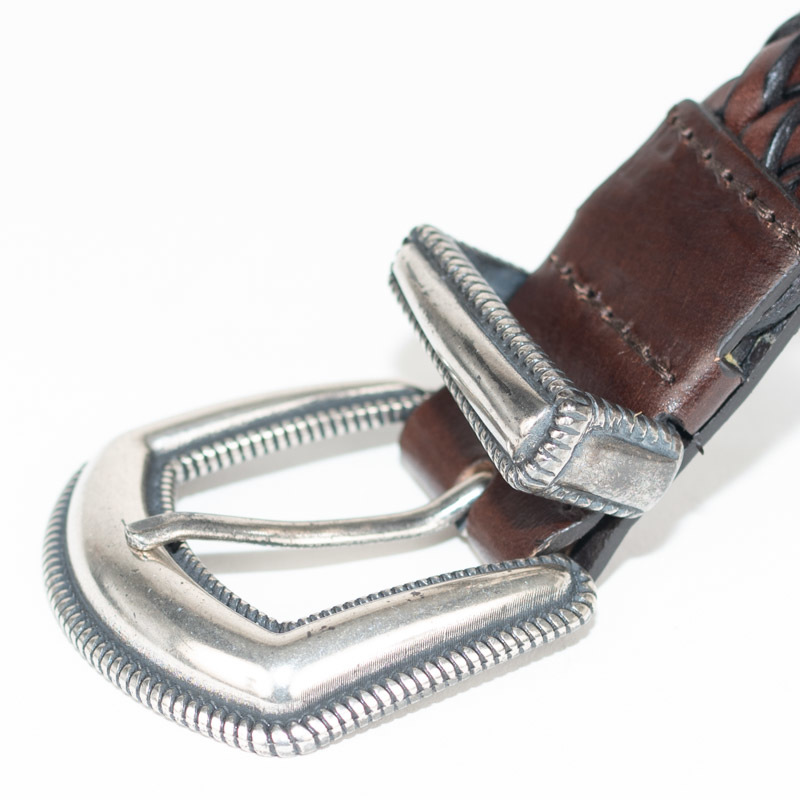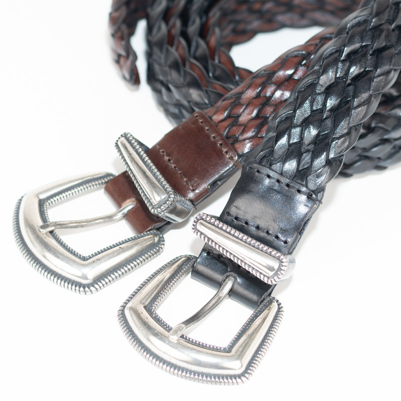 カーフレザーのインターウーブン(編み上げ)バックルクロージャーベルトのご案内です。
