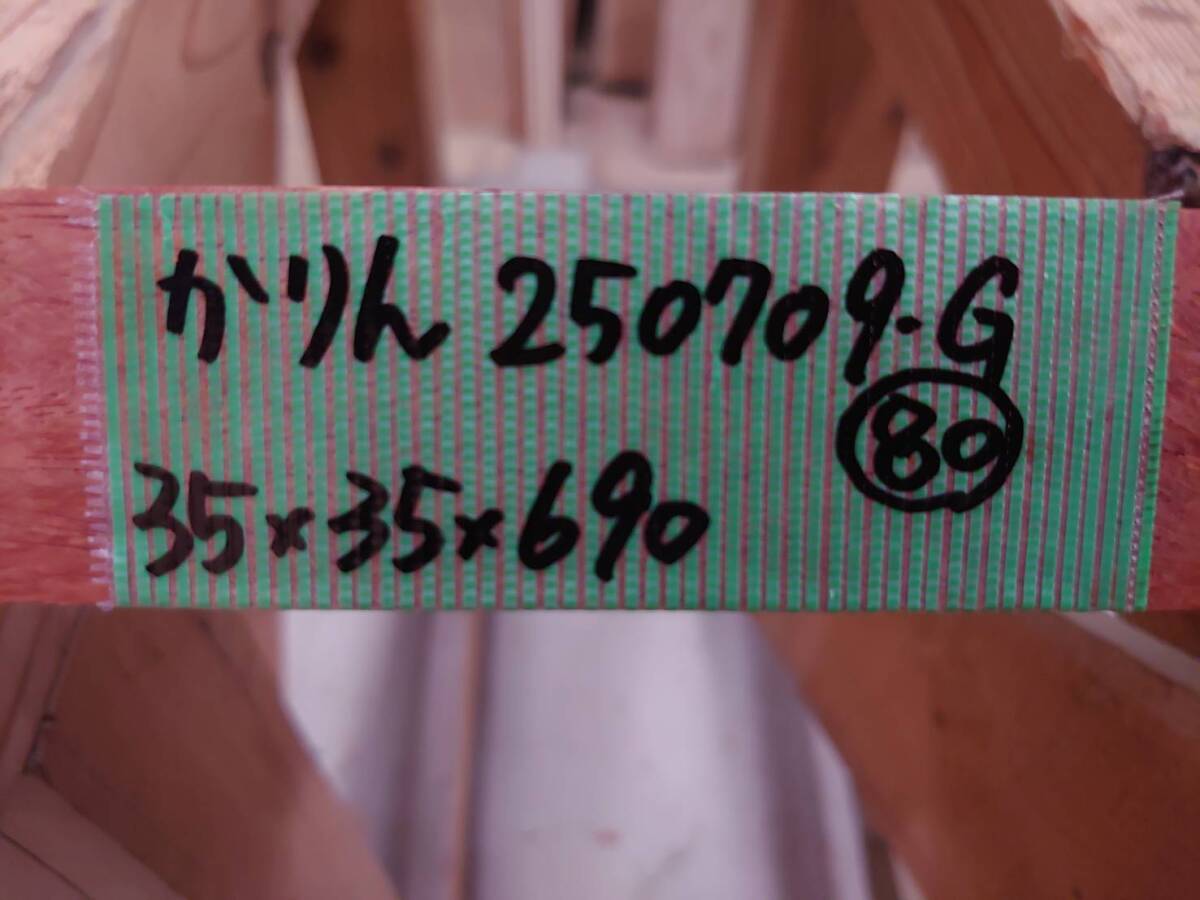 かりん No.250709-G 荒材 無垢 乾燥材 角材(長さ690㎜x幅35㎜x厚み35㎜)1本 木材 DIY 小物作りに