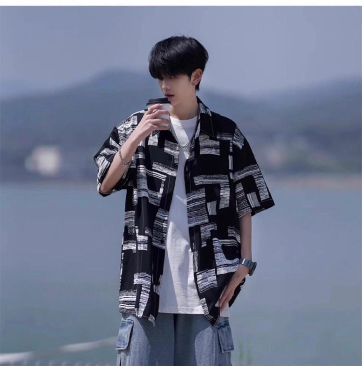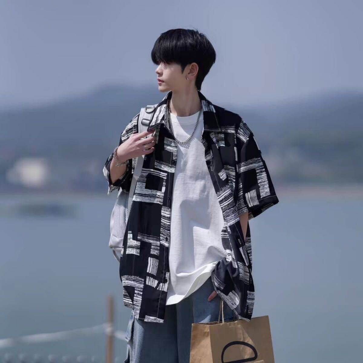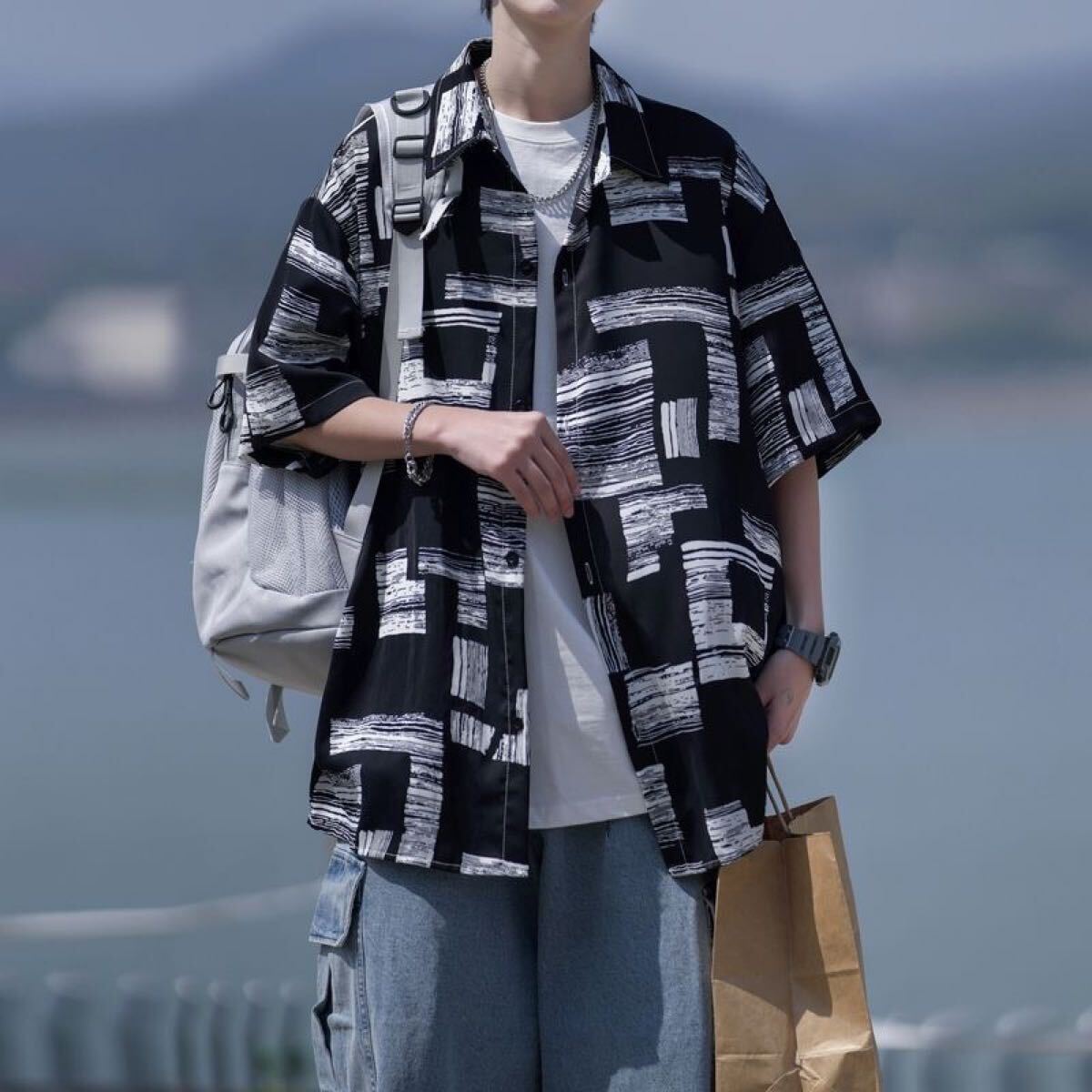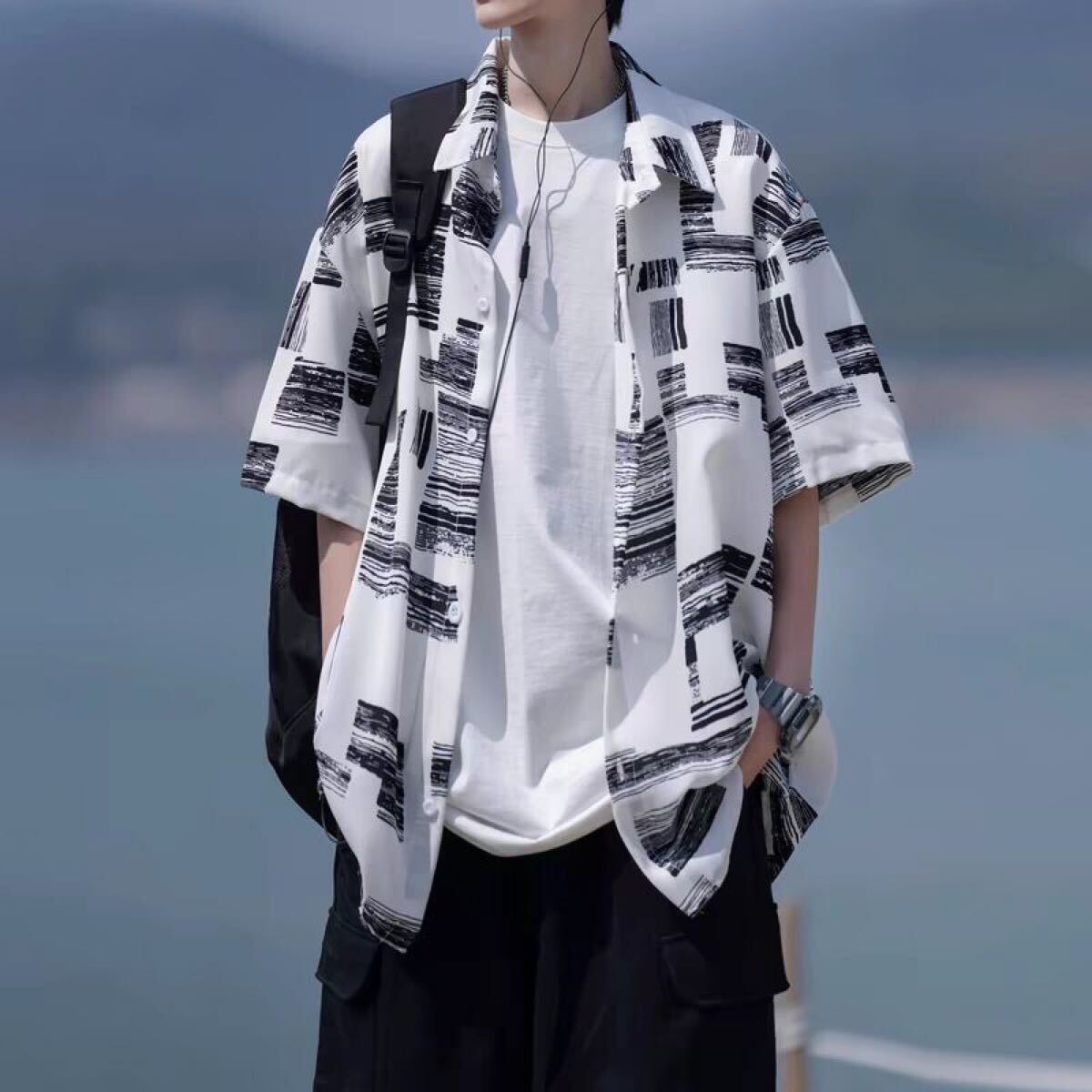 メンズ シャツ アウター 総柄シャツ トップス 大きいサイズ 韓国風 半袖 五分丈袖 春夏 ゆったり 涼しい クール カジュアル JCCS019(2色M-5XL)