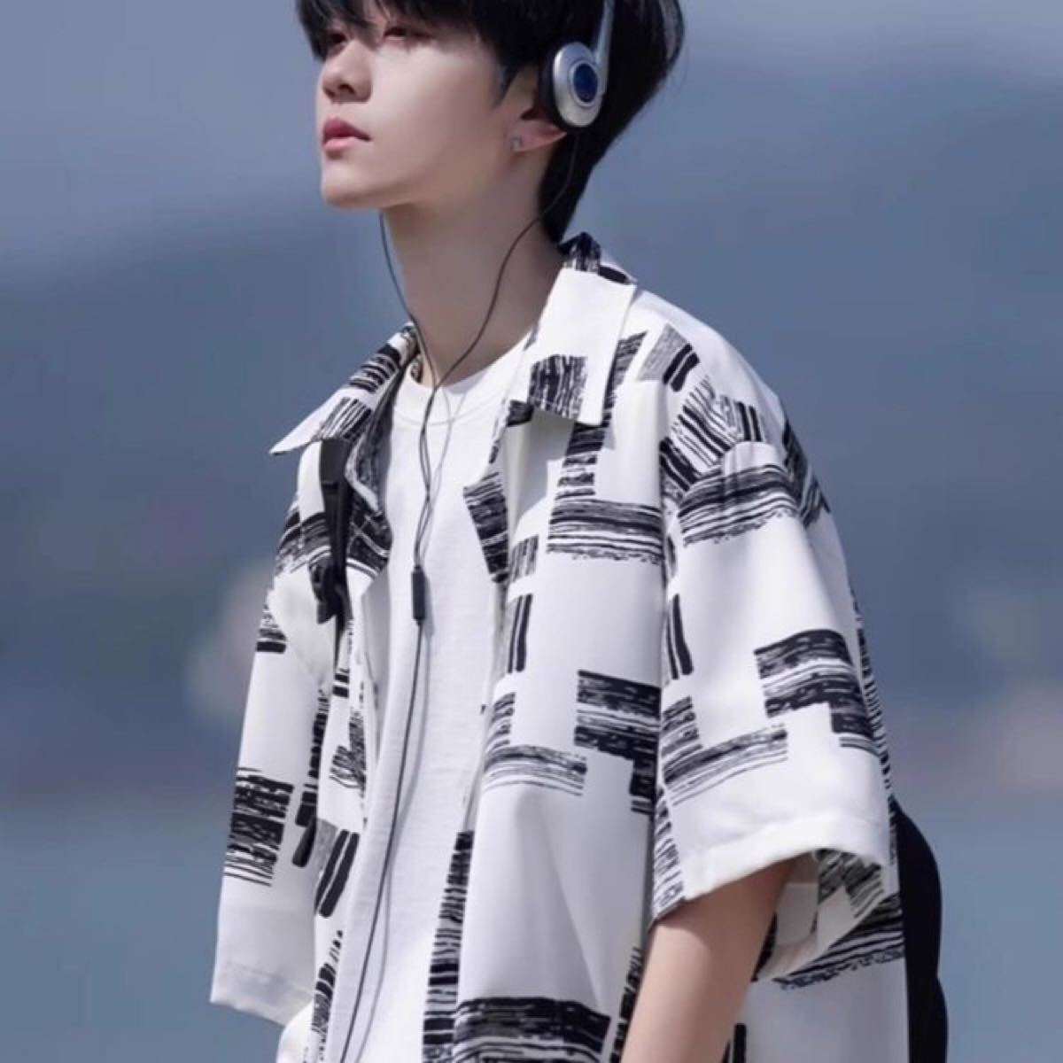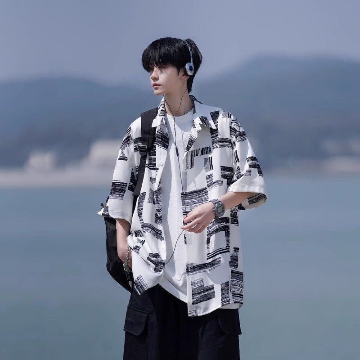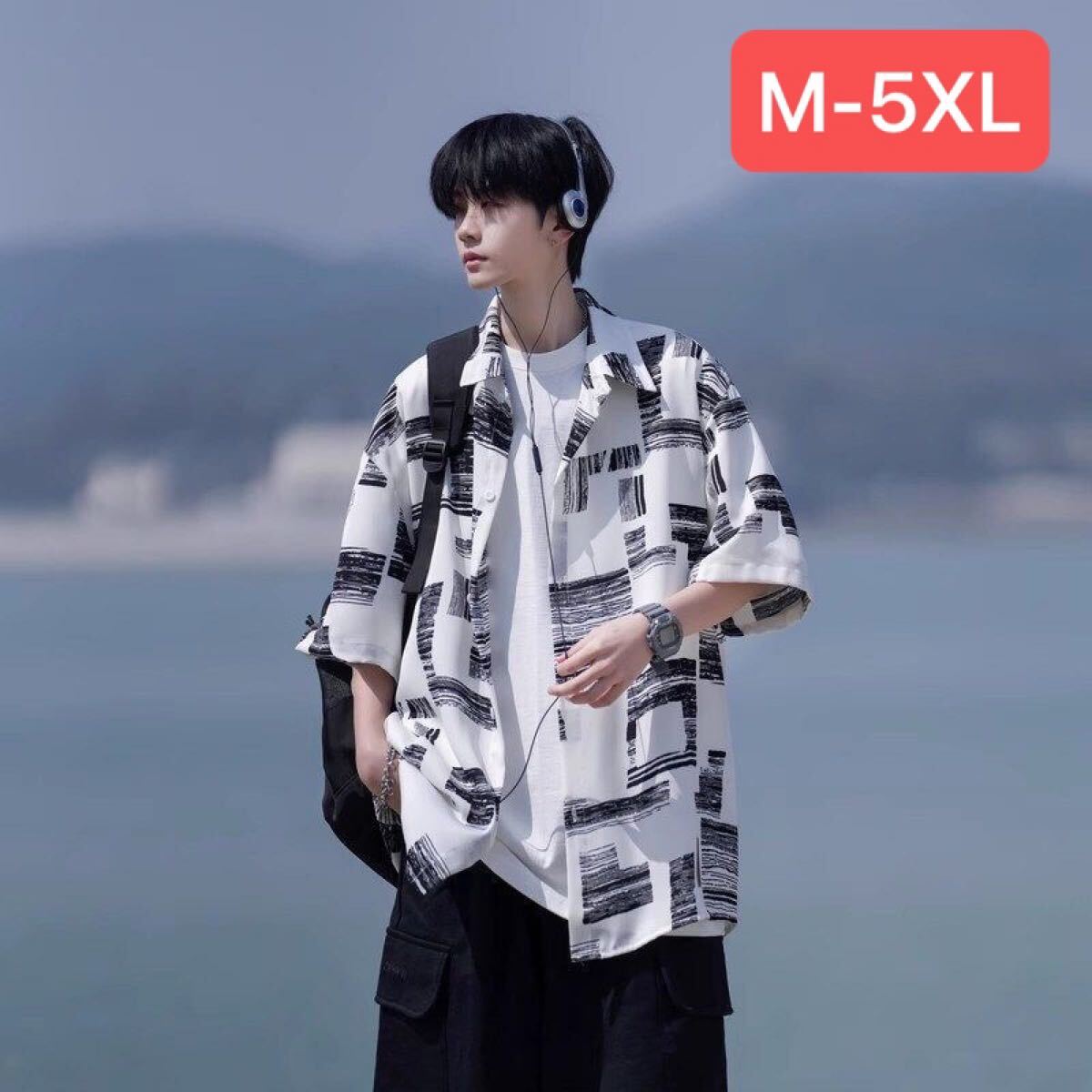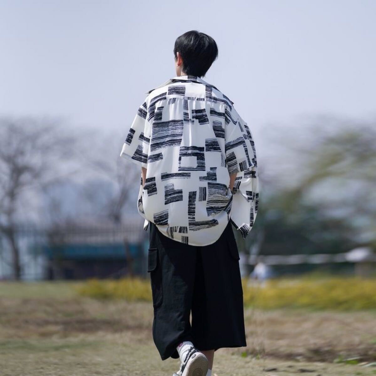 メンズ シャツ アウター 総柄シャツ トップス 大きいサイズ 韓国風 半袖 五分丈袖 春夏 ゆったり 涼しい クール カジュアル JCCS019(2色M-5XL)