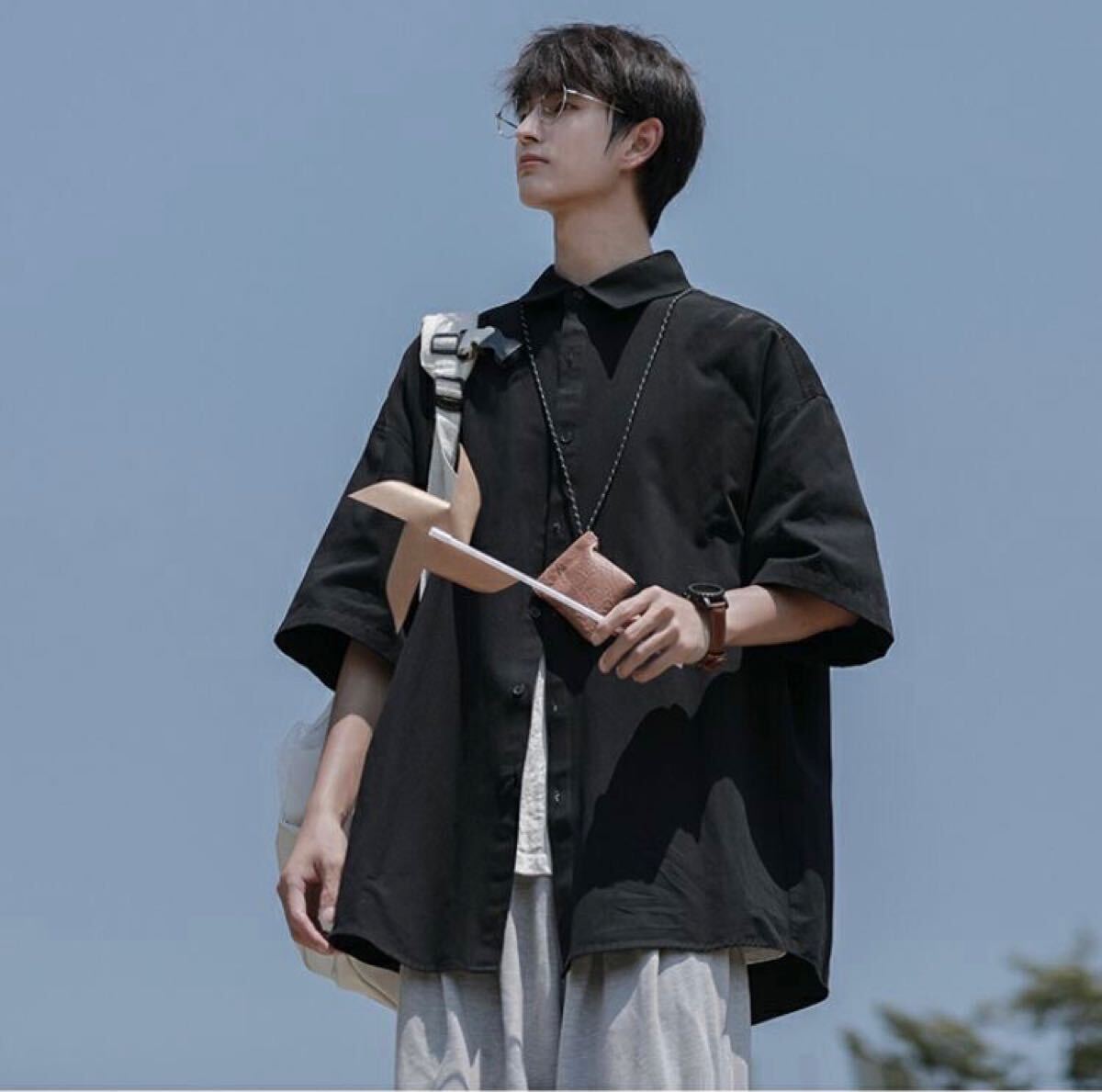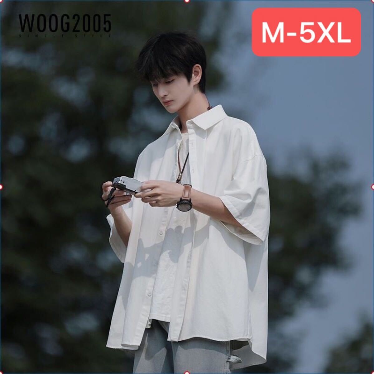 メンズ シャツ アウター トップス 無地シャツ 大きいサイズ 半袖 五分丈袖 春夏 ゆったり カジュアル JCCS020(2色M-5XL)