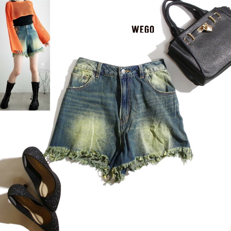 美品 WEGO ウィゴー ヴィンテージ ウォッシュ ショートパンツ S インディゴ デニム フリンジ Y2K Y3K