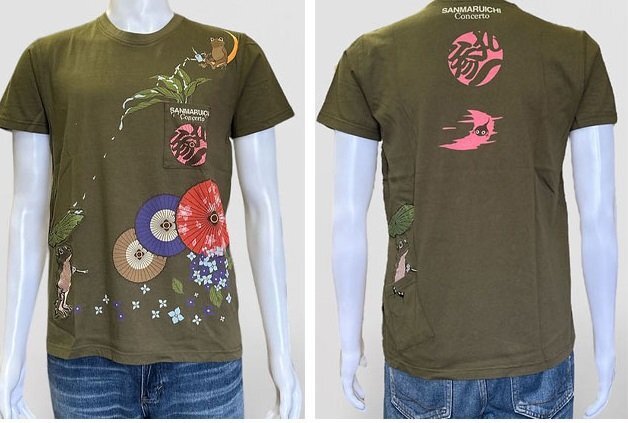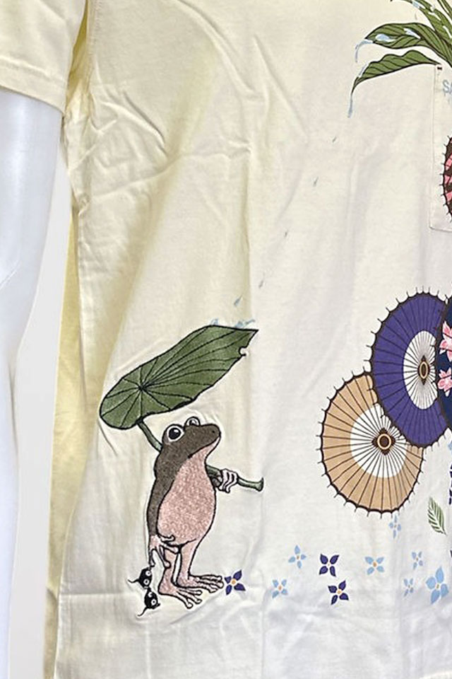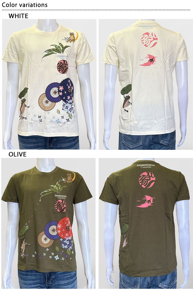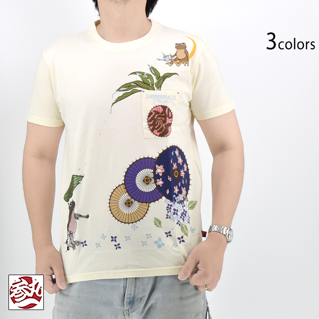 「参丸一」さんから「番傘がほしい蛙半袖Tシャツ(SKY-58019)」のご紹介です。 月の蛙が植木に水をあげると、地上の蛙には雨になって降り注ぎます。 地上の蛙は番傘が欲しいようですが、おたまじゃくしは雨に濡れて喜んでいます。 フロントではポケットで雨宿りをしていた蛙が、雨が上がった背中側ではポケットから出てきて空の様子を見ています。 頭上には、参丸一の太陽が見えてきました。 でも不思議。 水面に映るのはなぜか月なのです。 ストーリー性のある、どこか幻想的な一枚に仕上がりました。 ボディーには、柔らかな肌触りのTシャツ生地を採用しました。 | |||||||||||||||||||||||||