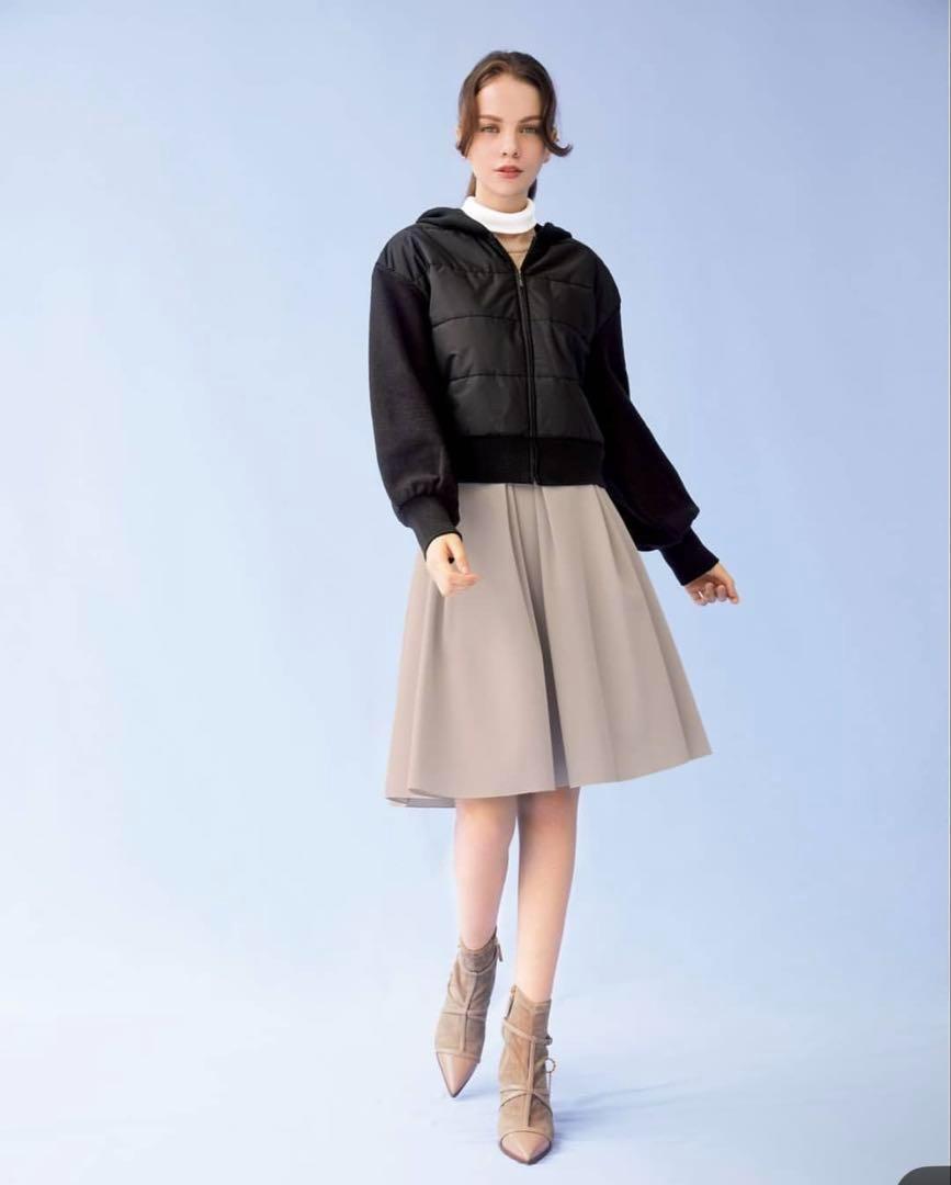 ハリのあるマットストレッチグログラン素材でふんわりとしたシルエットを美しくキープします。