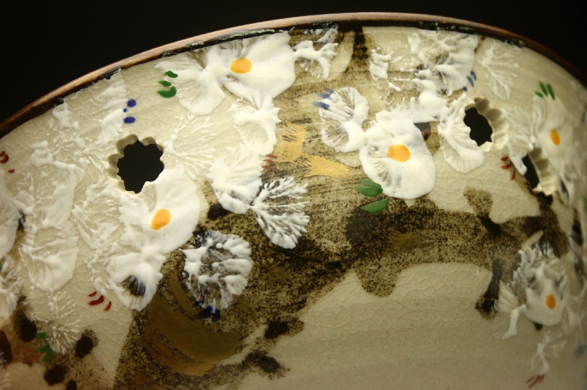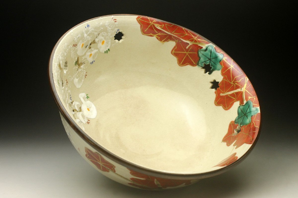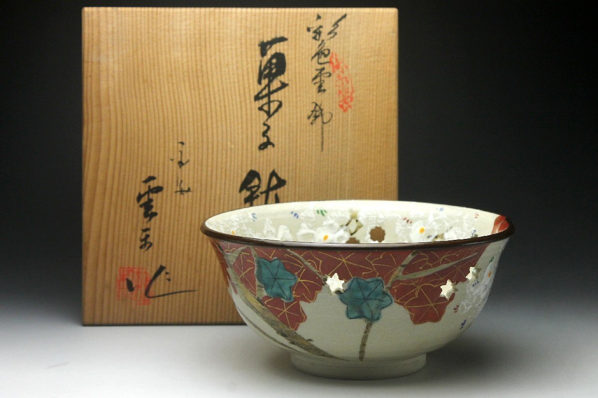 【余韻】 清水焼 平安雲楽 斎藤雲楽 色絵雲錦 菓子鉢★共箱 無傷美品<同梱可>