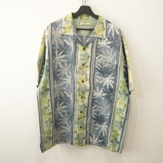 r140 2000年代製 トミーバハマ 半袖アロハシャツ■00s XLサイズぐらい ブルー オープンカラー 開襟 ボタニカル ボーダーパターン 古着卸