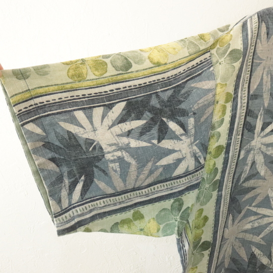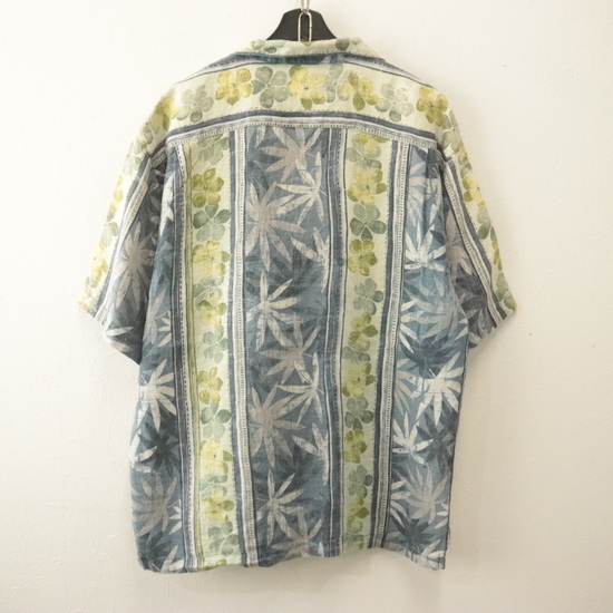 商品名 r140 2000年代製 トミーバハマ 半袖アロハシャツ■00s XLサイズぐらい ブルー オープンカラー 開襟 ボタニカル ボーダーパターン 古着卸