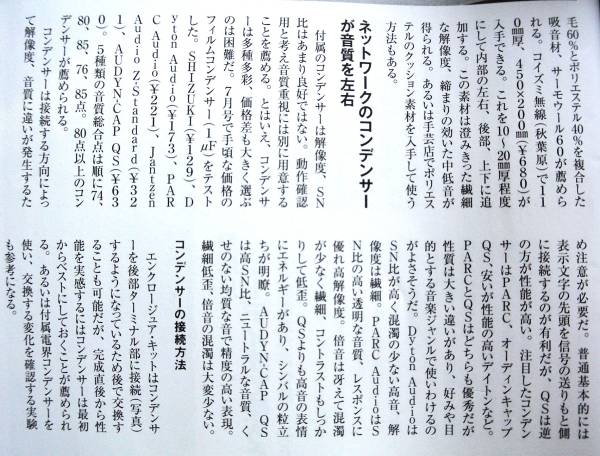 当商品は、 電解コンデンサ 10 μFが1個の価格です。複数ご注文の場合は 複数個でご落札下さい。 他の容量もご注文で、同梱をご希望のお客様は ご落札後、同梱を依頼する より ご依頼ください。 PARC Audio は1996年日本ビクタ ー、SONY、サムスン電子などでスピーカー部門の統括マネージ ャー、首席研究員を歴任、数々の特許を取得するなどの実績を残し た後、独立したスピーカー一筋の技術者により立ち上げられました 。 取り扱い品目; 1.スピーカーユニット、 2. フィルムコンデンサー 3.電解コンデンサー 4.コイルなど ・スピーカーのネットワーク部品 などに特化した品揃えをしています。 主な特徴; 1)高精度 ・ 一般のコンデンサーに比べ圧倒的に高精度の許容差3%を実現。精度の高いネットワークが製作できます。 2)高音質 ・フィルムタイプに比べ図太くしっかりした音色で、PARC Audioのサウンドポリシーを実現しています。 ・特にウーファー用に最適ですが、トゥイーター用としての使用も十分可能です。 3)高品位材料使用 ・キーパーツのアルミ箔は国内製を使用。ベースとなっているモデルは大手オーディオメーカーでも採用されている実績のあるものです。 4)RoHS対応 ・環境規制のRoHS指令に対応しており、カドミウムや鉛等の有害物質を使用していません。 規格 ; 作動温度;-40℃~105℃ 耐圧電圧;100V DC 200V AC 許容差;±3% 1KHz ・電解コンデンサーの品質を簡単に見分ける方法とは; 1.耐圧電圧;100V DC 200V AC有れば合格です。 2.許容差;±3% 有れば最高品質です。国内産の良い物でも ±5%、海外のものは殆どが±10%と音質に多大な影響を与えて います。 電解コンデンサの価格表/寸法 : 1. 1μF 13×26mm 1個 299円 2. 2.2μF 1個 312円 3. 3.3μF 1個 323円 4. 4.7μF 1個 349円 5. 5.6μF 1個 386円 6. 6.8μF 1個 423円 7. 8.2μF 1個 447円 8. 10μF 1個 498円 9. 15μF 1個 547円 10. 22μF 1個 634円 11. 27μF 16×27mm 1個 759円 12. 33μF 1個 871円 13. 47μF 1個 1059円 14. 68μF 1個 1220円 15. 100μF 1個 1476円 欠品の際は、自己紹介欄でお知らせ します。ご確認のうえ、ご注文ください。 参考にユーザーさまの第一印象を載せさせて頂 きました。 千葉 M.M.さま コンデンサー届きまし た。 30分ほどでコンデンサー交換し早速試聴いたしました ところその音の良さに驚きました。 上には上がある事を思 い知らされました。 ご丁寧ご親切なご対応を感謝していま す。 店長からの一言; 実際にスピーカーの グレードアップ業務に使用した印象ですが、高価な海外のモノをも 、凌ぐ優れものです。 音を聴いた瞬間に一人締めしたくな る程の感動を覚えたと同時に、これは皆さまに使って頂きたいと言 う思いが販売に至りました。 嘘だと思ったら使って見てく ださい!!。 | ||||