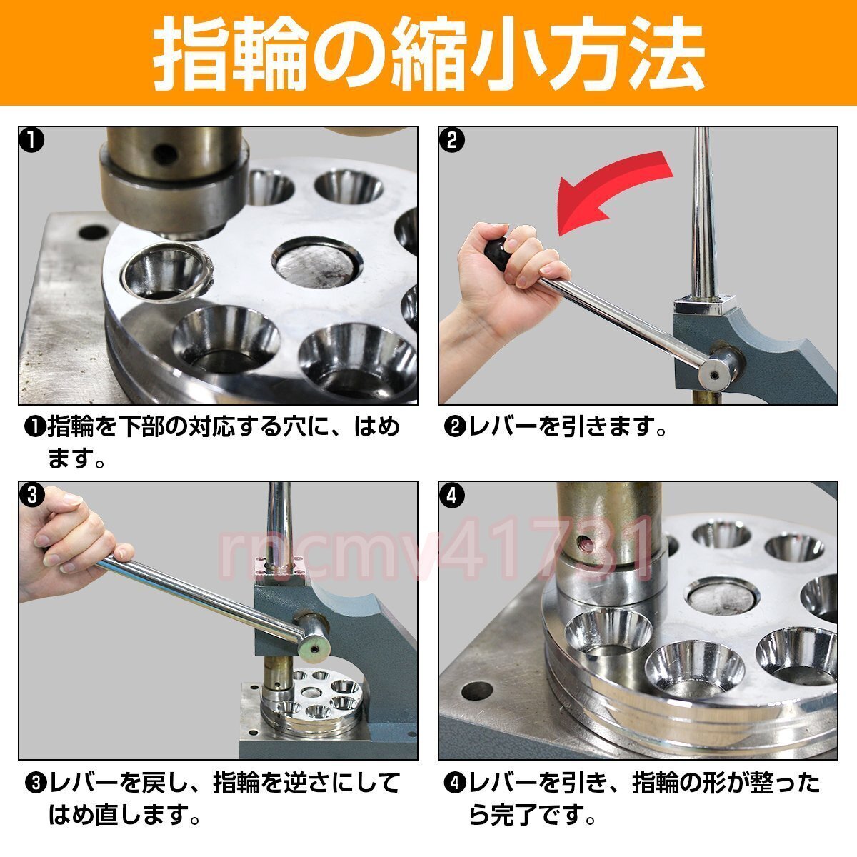 下部穴に指輪を押し付けてレバーを手前に倒すと指輪のサイズをダウンします。