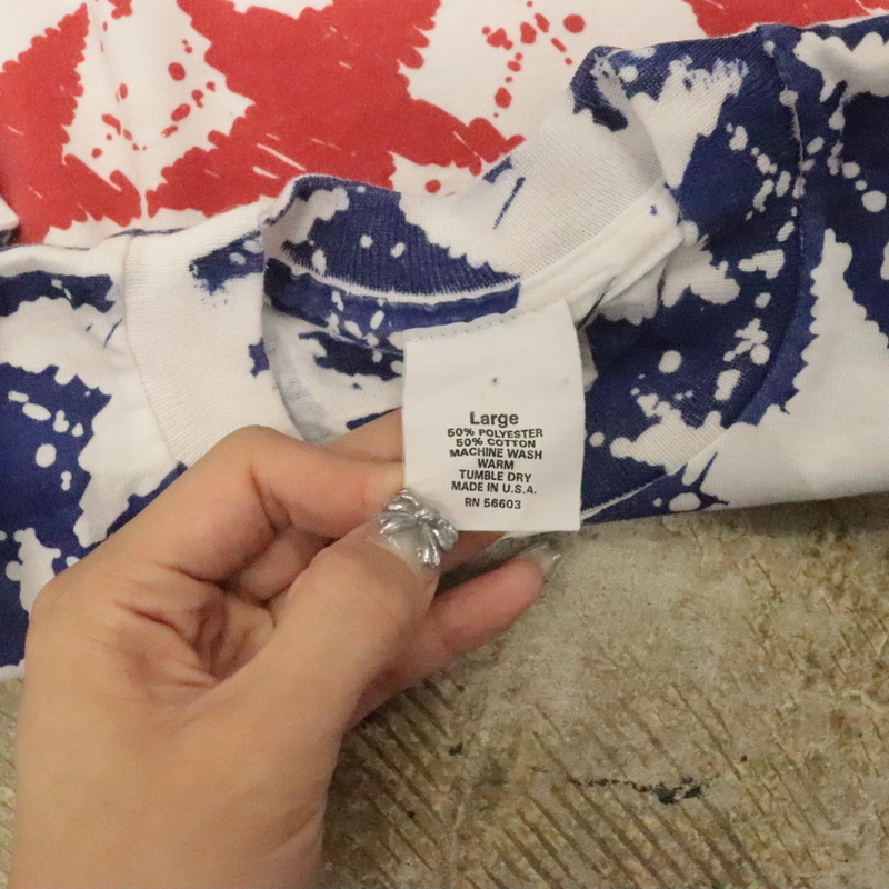 商品名 KD488 キッズ 子供服 90sビンテージ 総柄 プリントTシャツ USA製■1990年代製 表記Lサイズ アメカジ ストリート サイケ アンティーク 80s