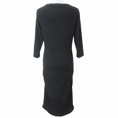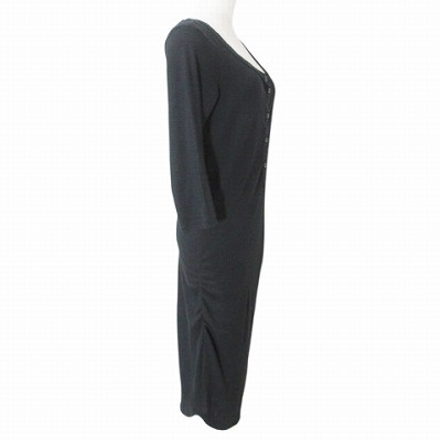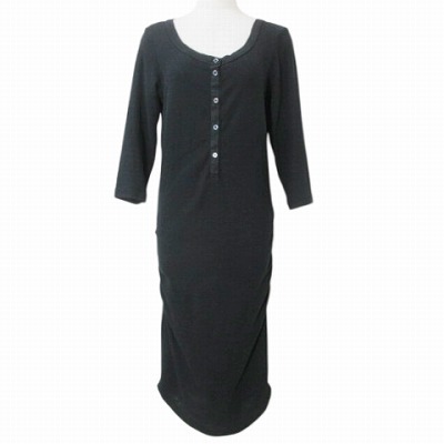 ジェームスパース JAMES PERSE ワンピース 7分袖 ミモレ丈 ヘンリーネック サイドギャザー 1 S相当 黒 ブラック X レディース