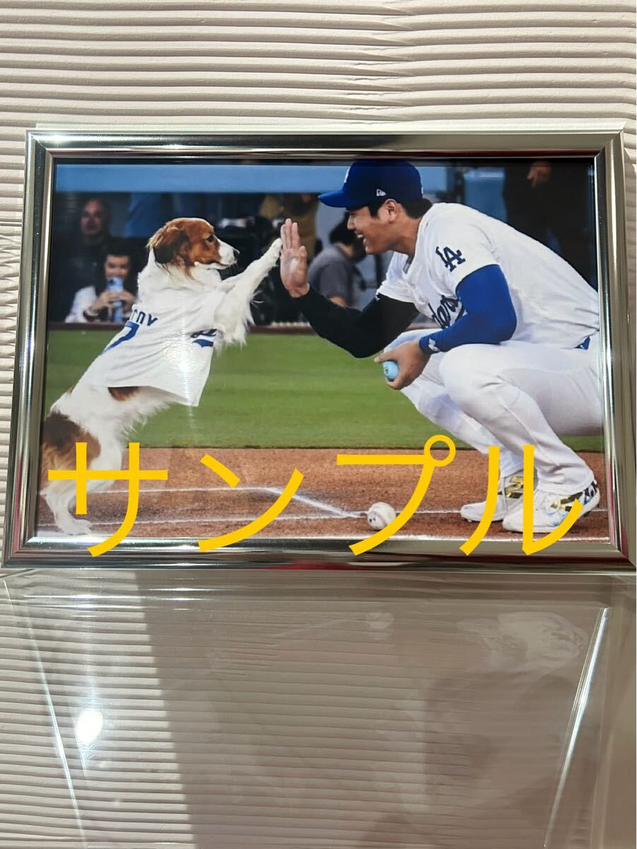 ◆大谷翔平投手と愛犬デコくんとのツーショット、A4写真。