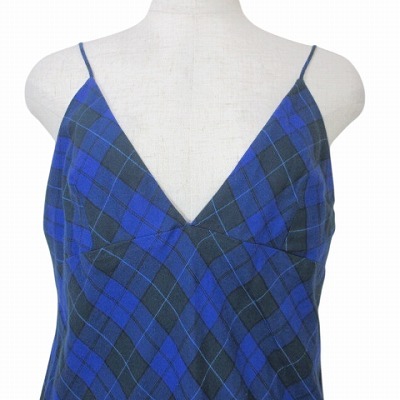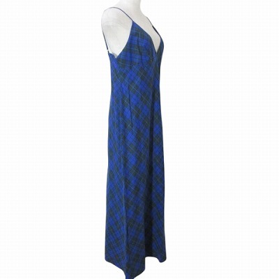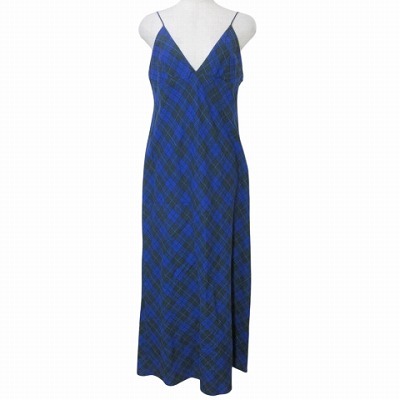 ザラ ZARA 近年 チェック キャミソールワンピース ロング L 175/96A 青 ブルー X レディース