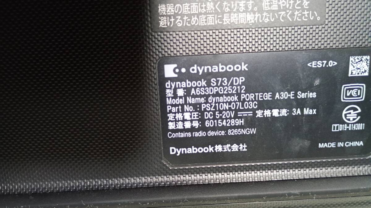 管50722-1 東芝 S73/DP バッテリー無し SSD無し メモリー無し 背面ネジ破損あり