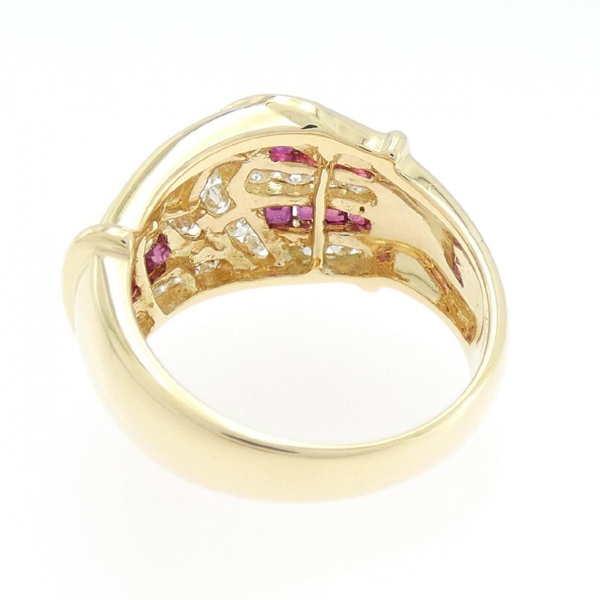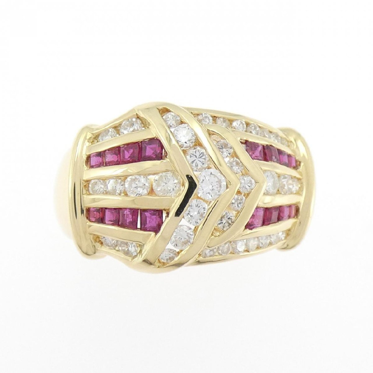 落ち着いた濃いレッドカラーのルビー。透明感のあるダイヤモンドと共に上品な指元を演出します。