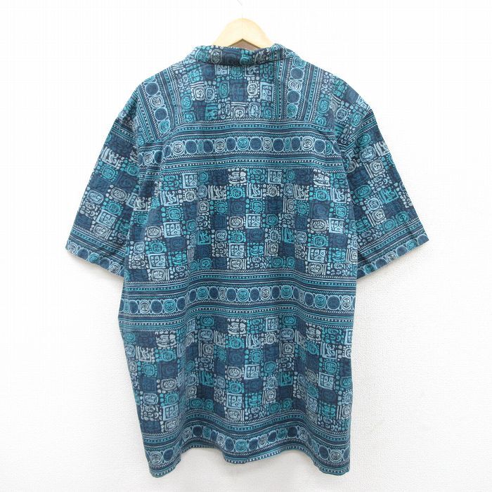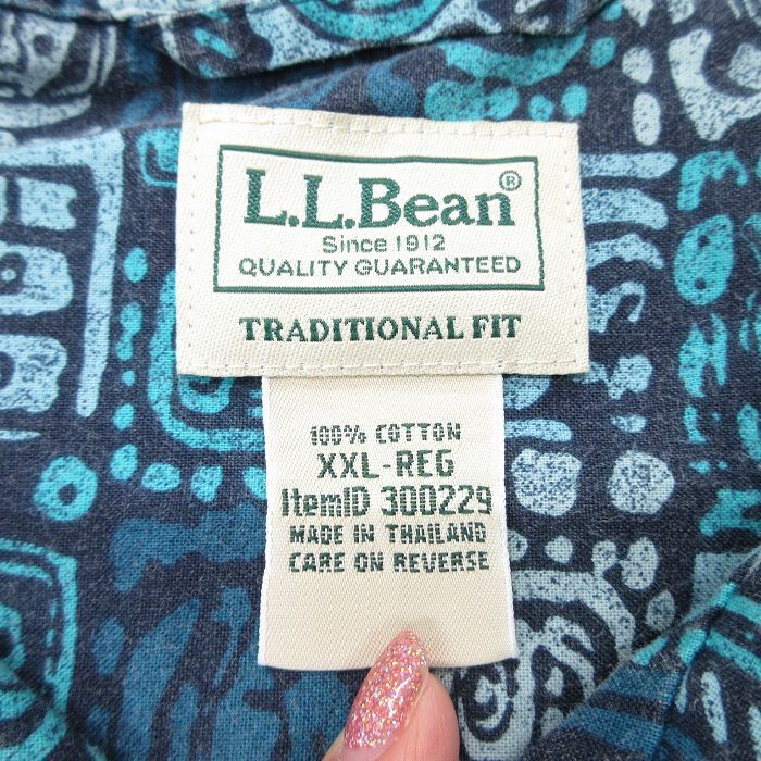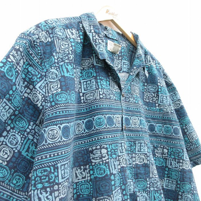 【商品名】 XL★古着 エルエルビーン 半袖 ハワイアン シャツ メンズ 00年代 00s 総柄 大きいサイズ ロング丈 コットン 開襟 オープンカラー 紺他【spe】