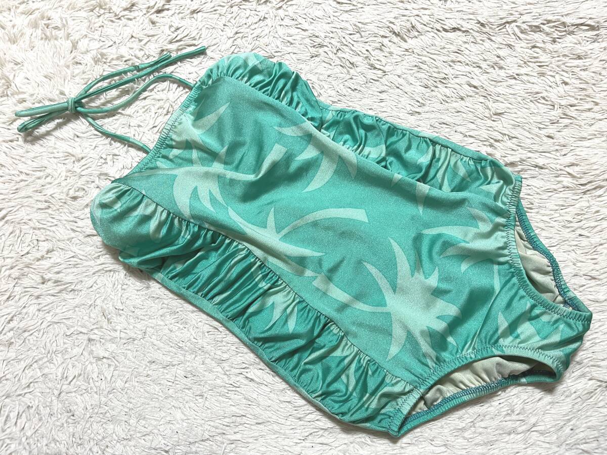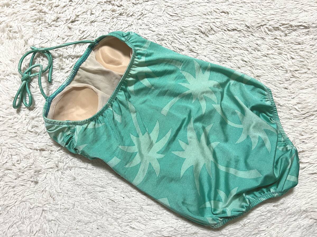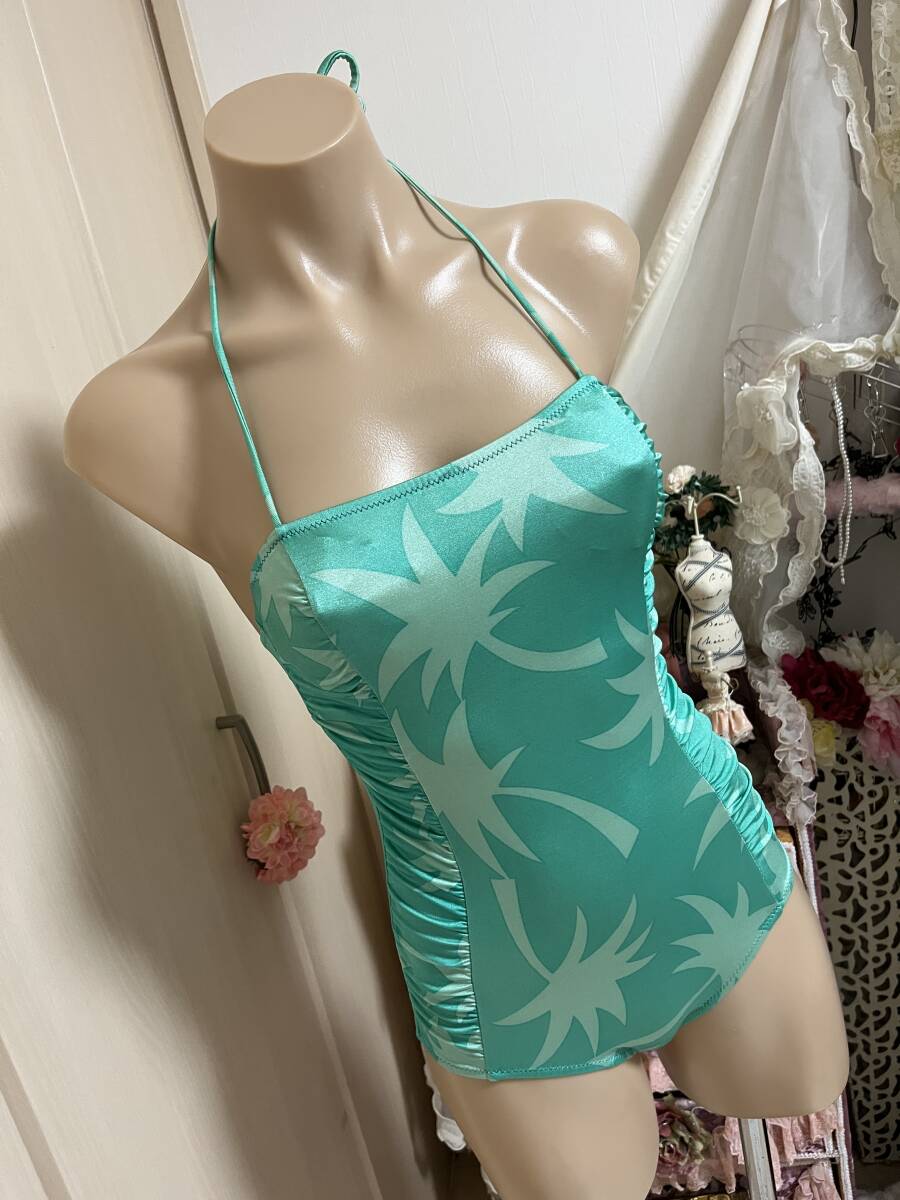 ●レディース水着9M●東京エイプリル◆ホルターネック*ワンピース水着:ミントグリーン/ヤシの木柄