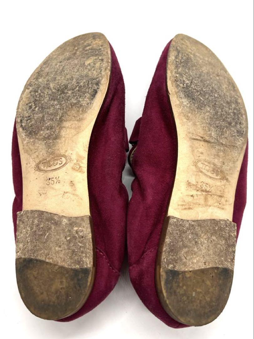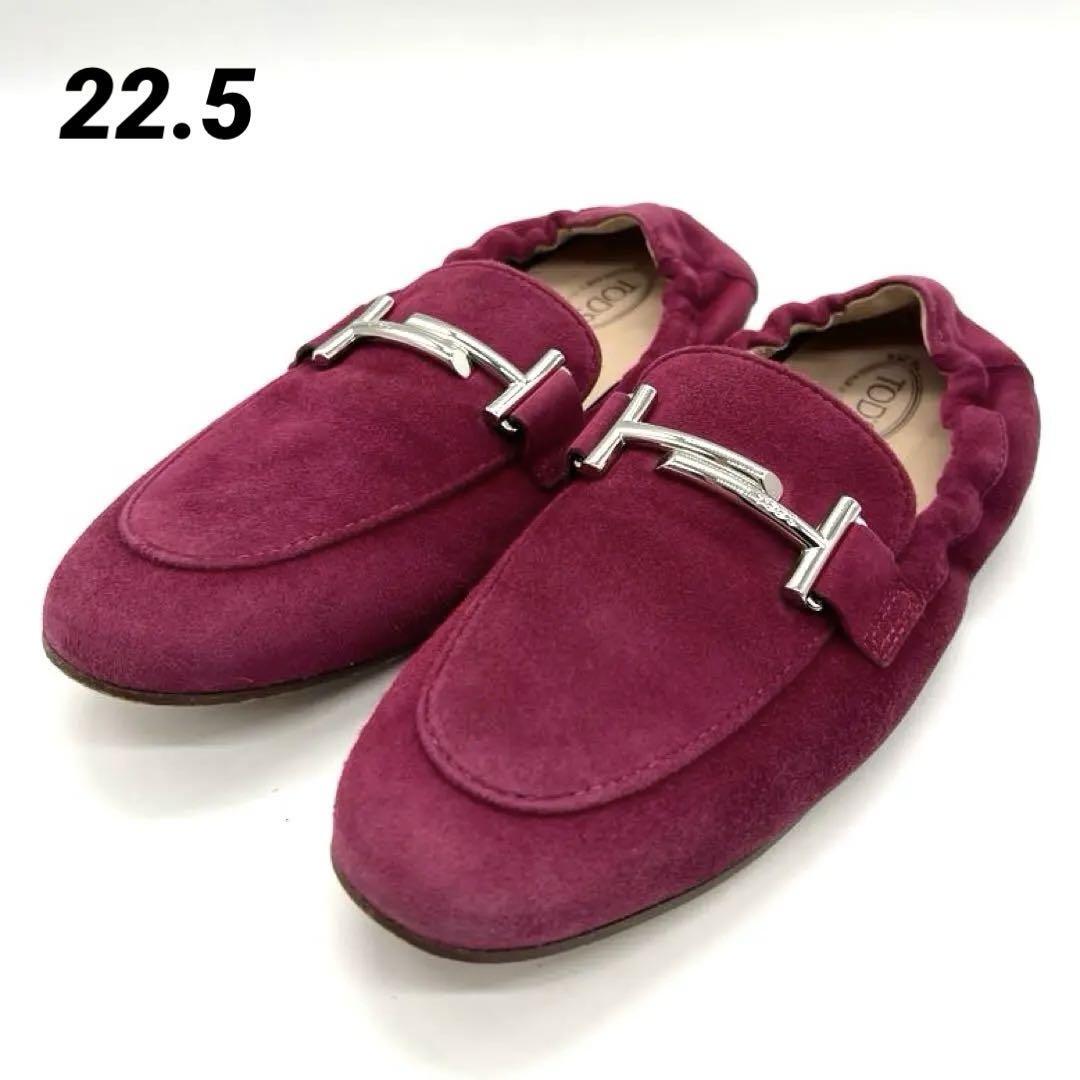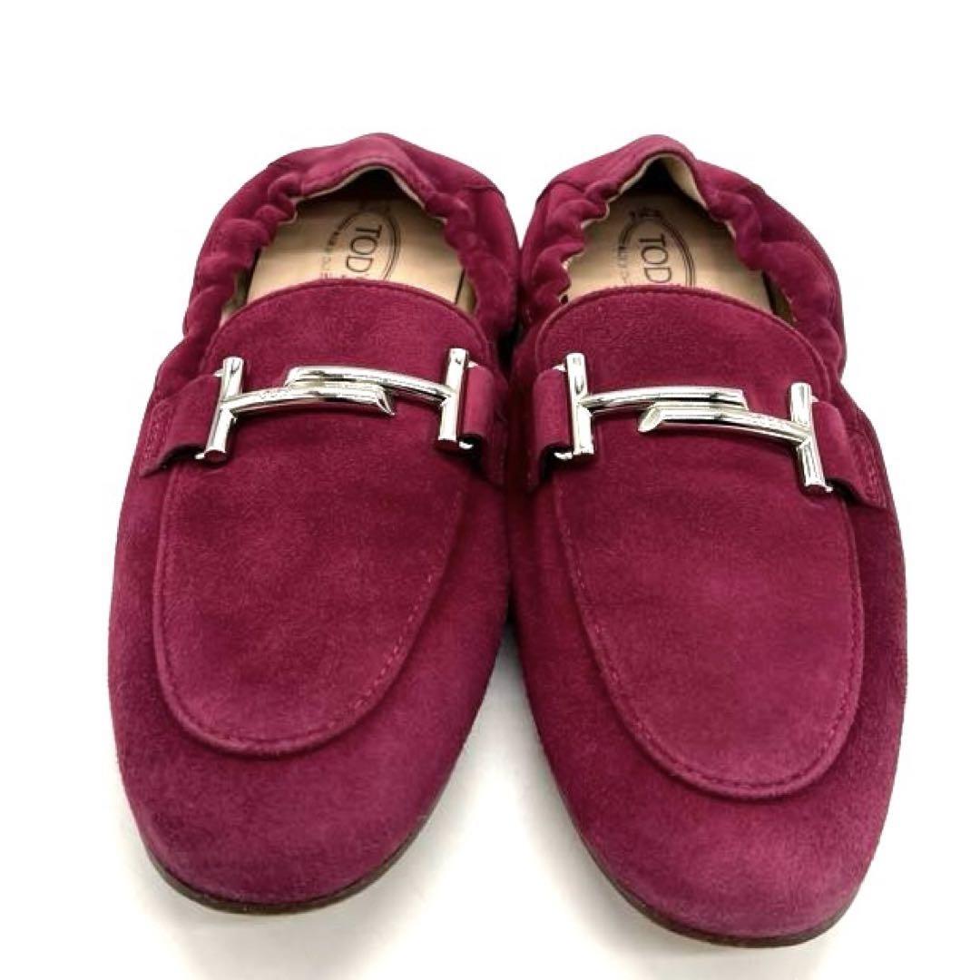 トッズ ローファー フラットシューズ ダブルTロゴ スエード シルバー バイオレット パープル ボルドー バイオレット ワインレッド