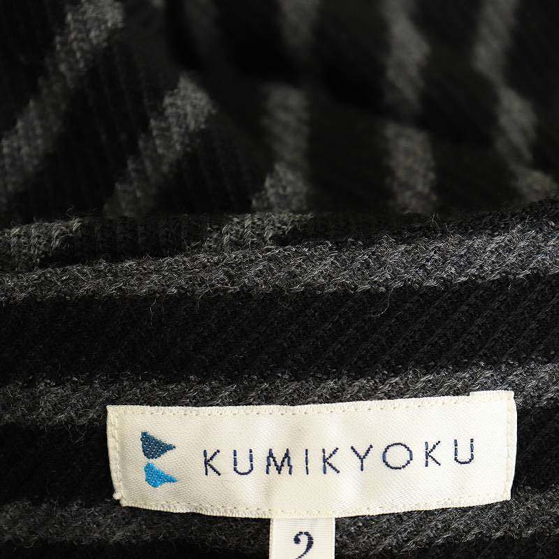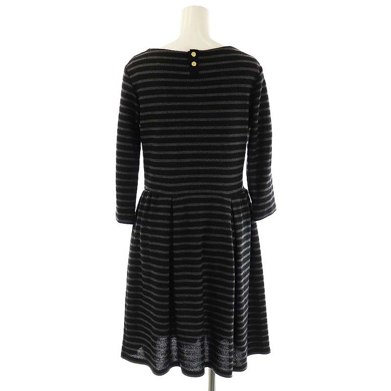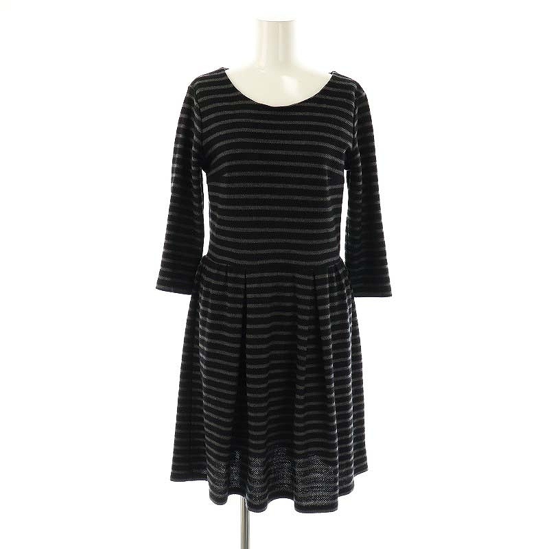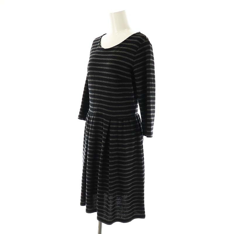 クミキョク 組曲 KUMIKYOKU ワンピース ひざ丈 七分袖 ボーダー 2 黒 ブラック グレー /AT ■OS ■AX レディース