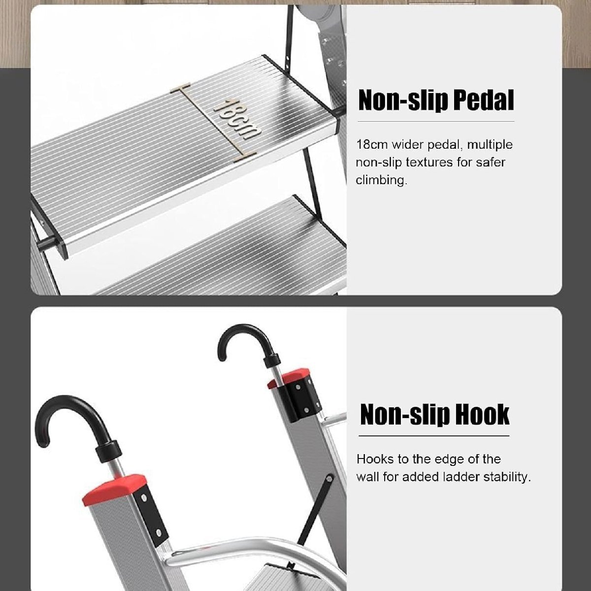 折りたたみ式手すり:このはしごは保管や移動が簡単で、取り外し可能な手すりにより、はしごをさまざまな位置に適応させることができ、より安全です。