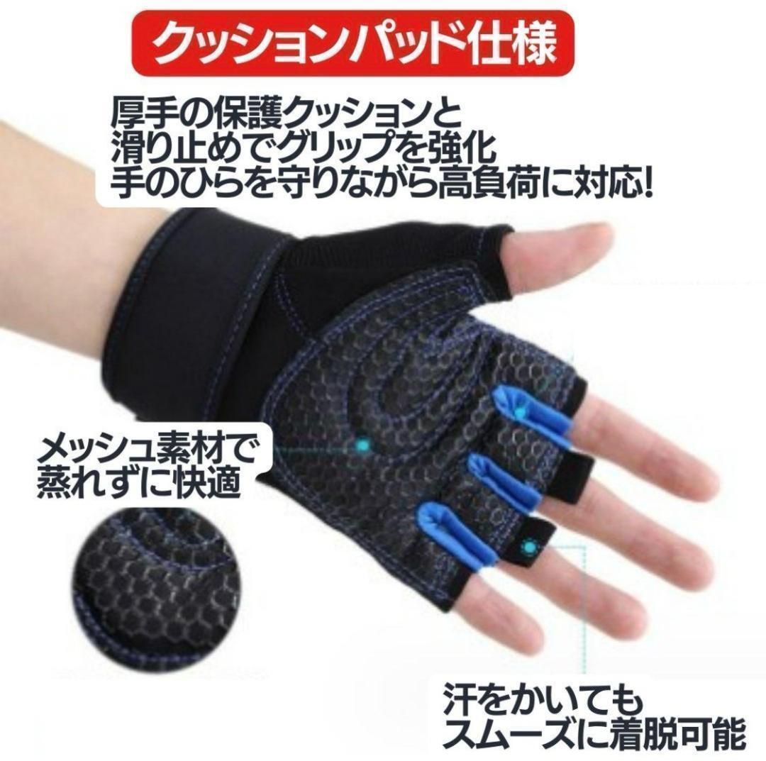 メッシュ素材とクッションパッドで快適なグリップ力を提供するトレーニンググローブ。