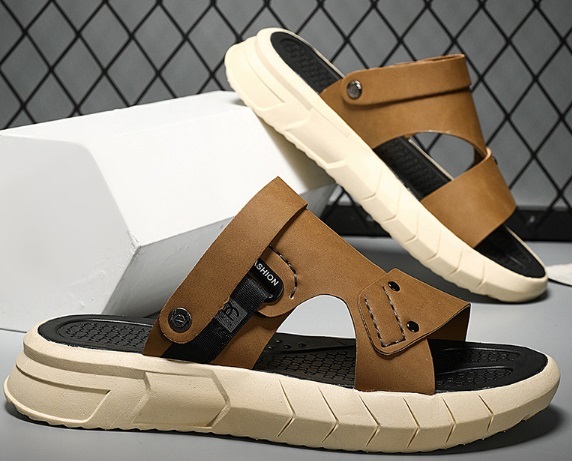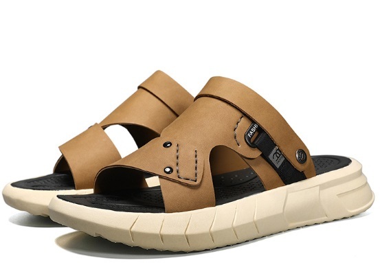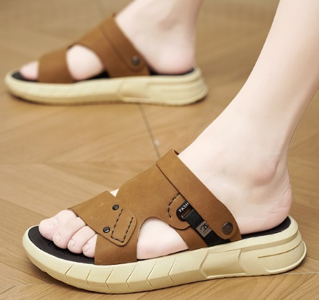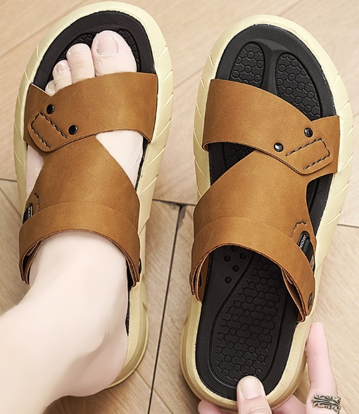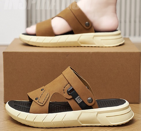 夏新品 2waysオシャレスリッパ メンズ ビーチ リゾートサンダル 防滑 通気 厚底 カーキ/26.5cm