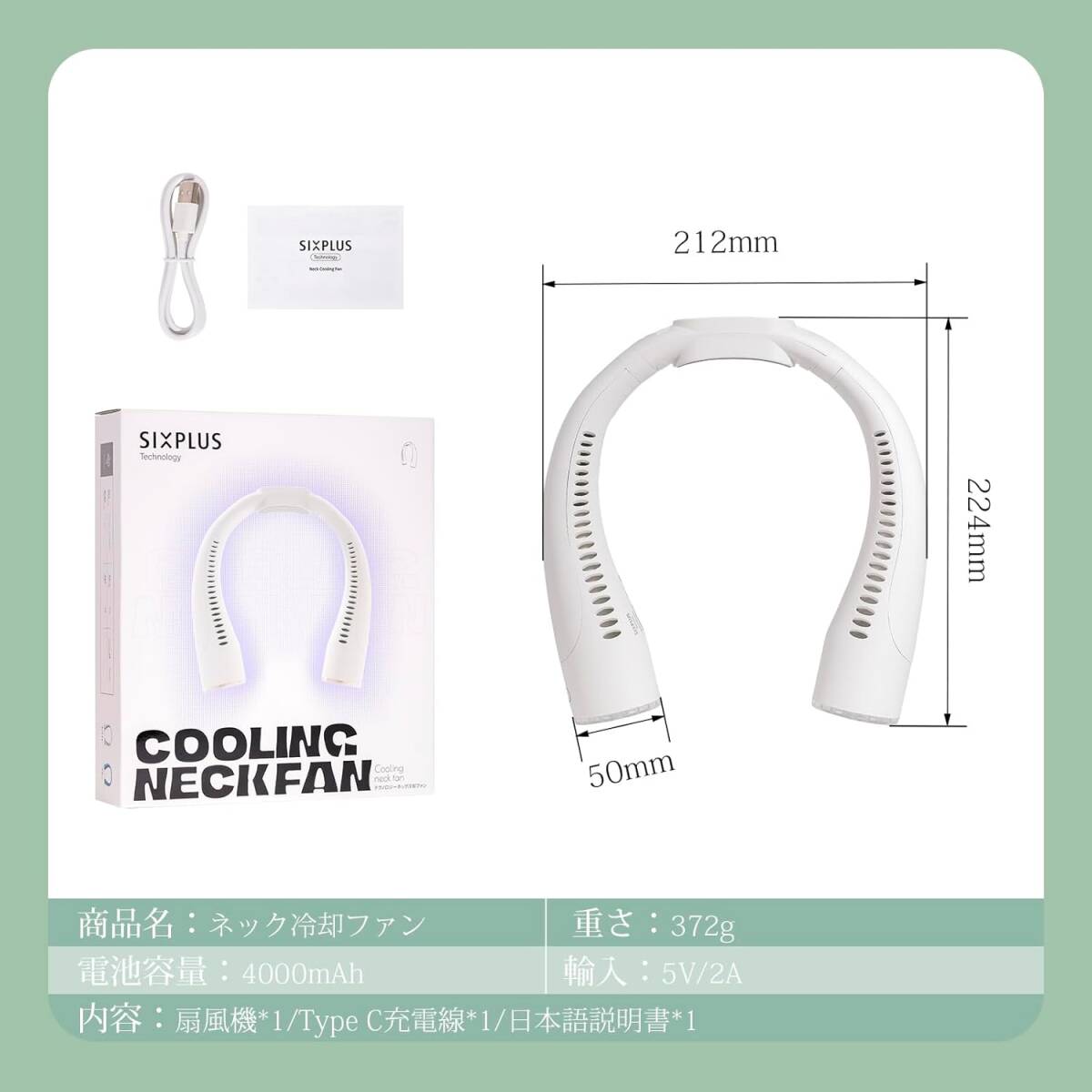 SIXPLUS Technology 首掛け扇風機 携帯扇風機 首掛け ネックファン ネッククーラー 静音 冷却プレート付き 暑さ対策 (ホワイト)