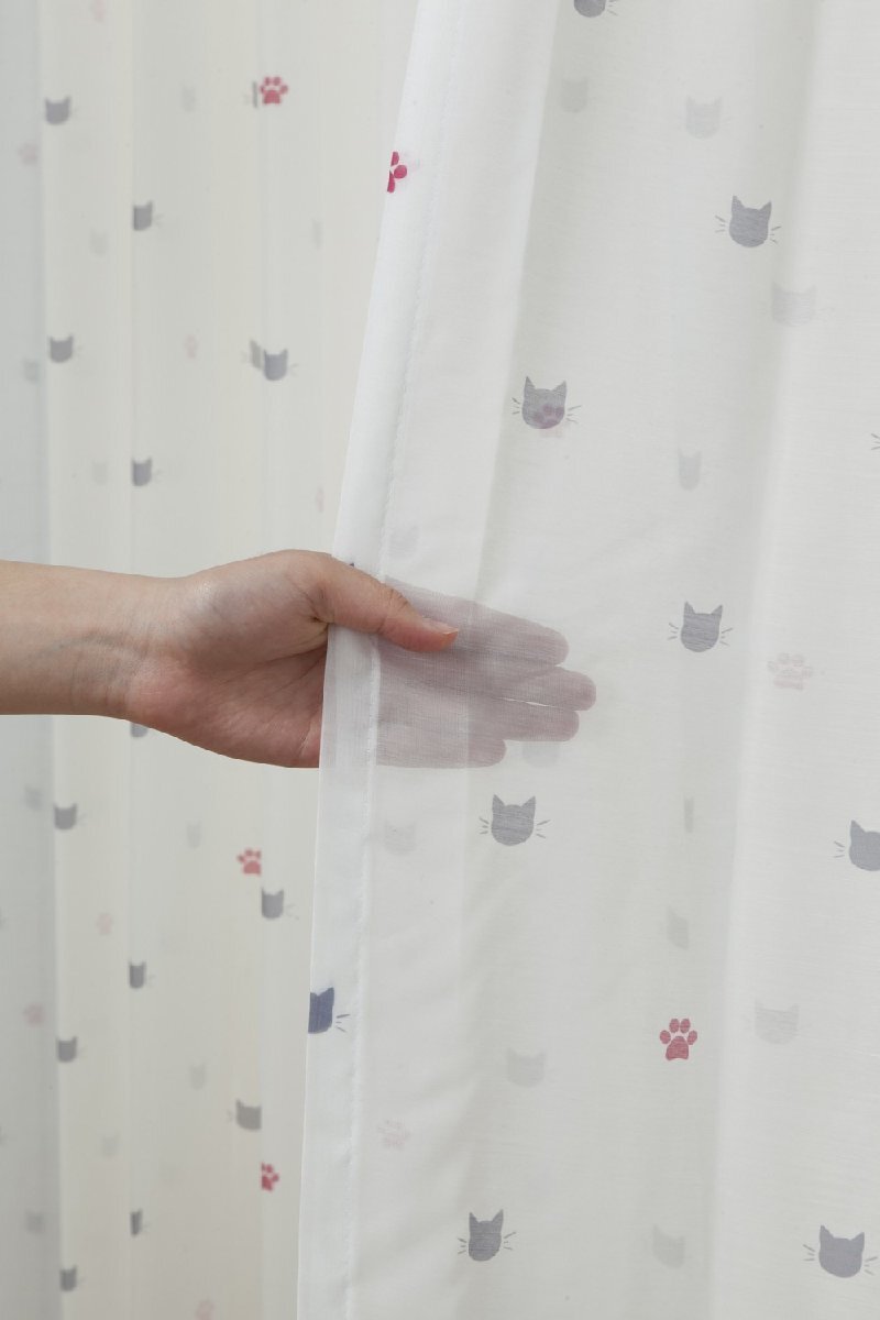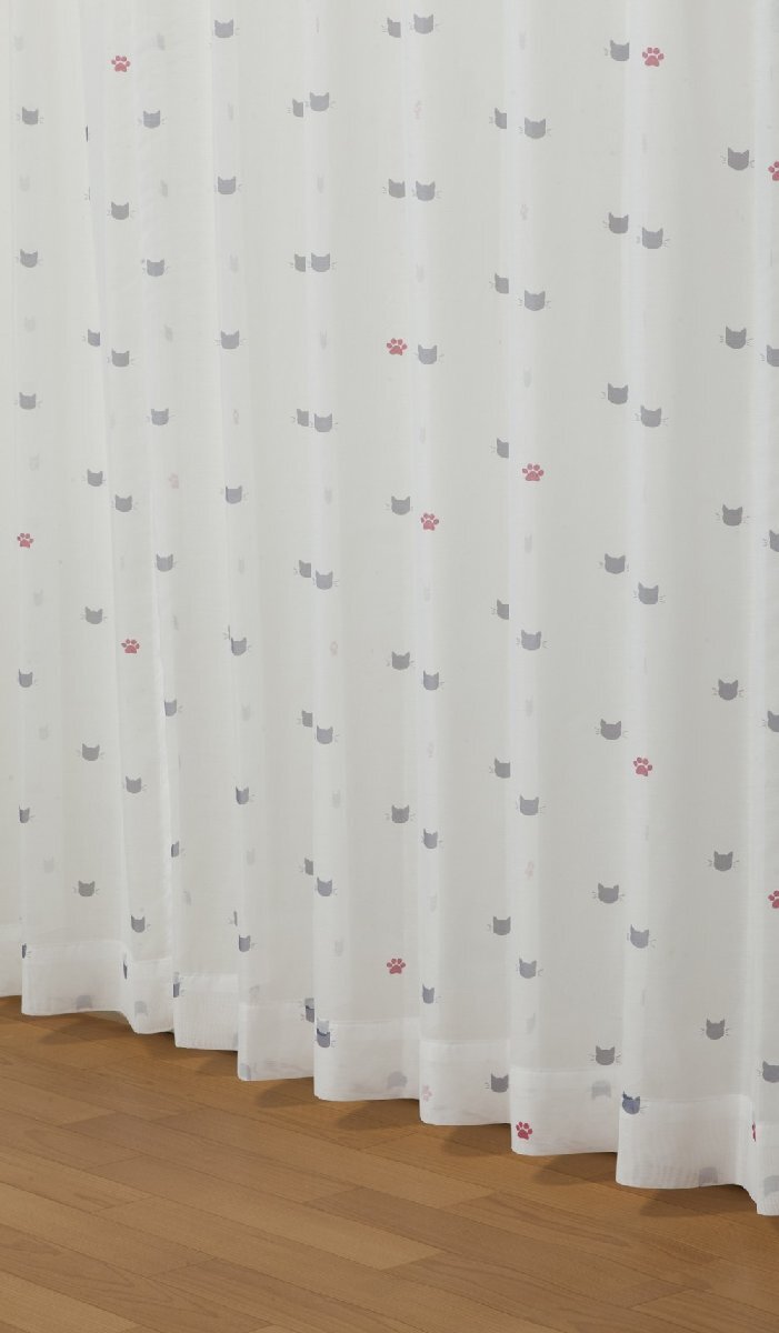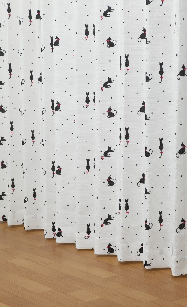 にゃんこ好き必見!かわいいにゃんこがデザインされたドレープ×レースのセットカーテン。