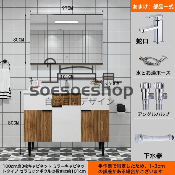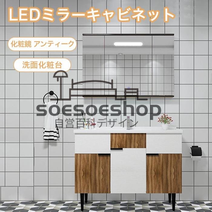 洗面台 洗面化粧台100cm LED ミラーキャビネット ミラー 棚 簡約 収納 化粧鏡 アンティーク 多くの選択可能