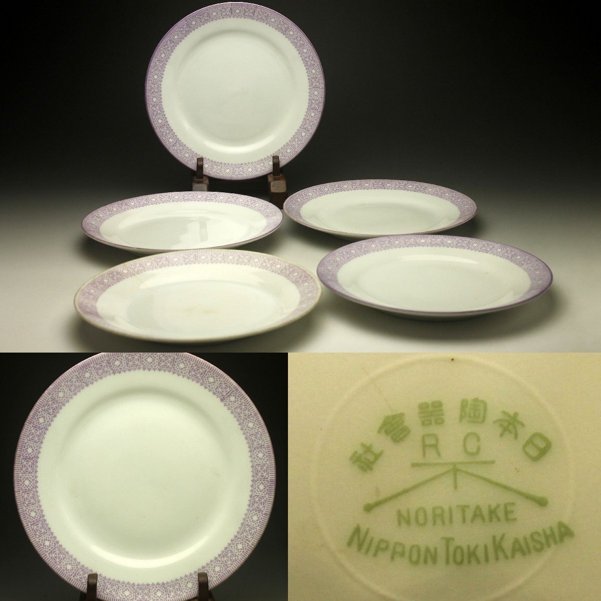 【余韻】 ヤジロベー印 日本陶器会社 オールドノリタケ皿 5枚 NORITAKE ディッシュ 高級ブランド食器 西洋陶器 インテリア<同梱可>