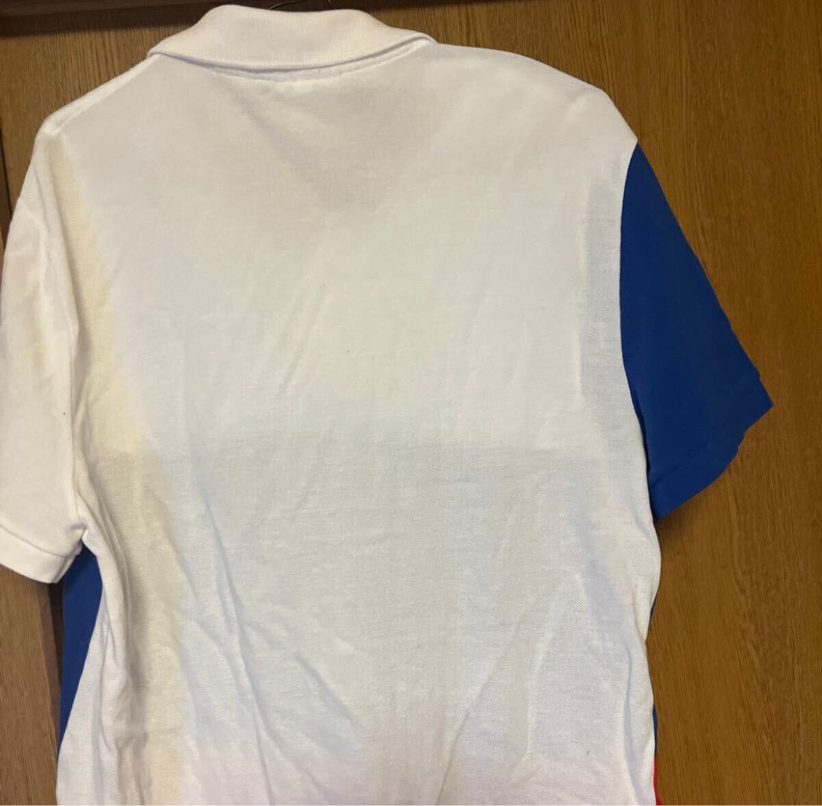 フランス国旗をイメージさせます。ほとんど着用してませんが数回洗濯してます。特にダメージもありません。