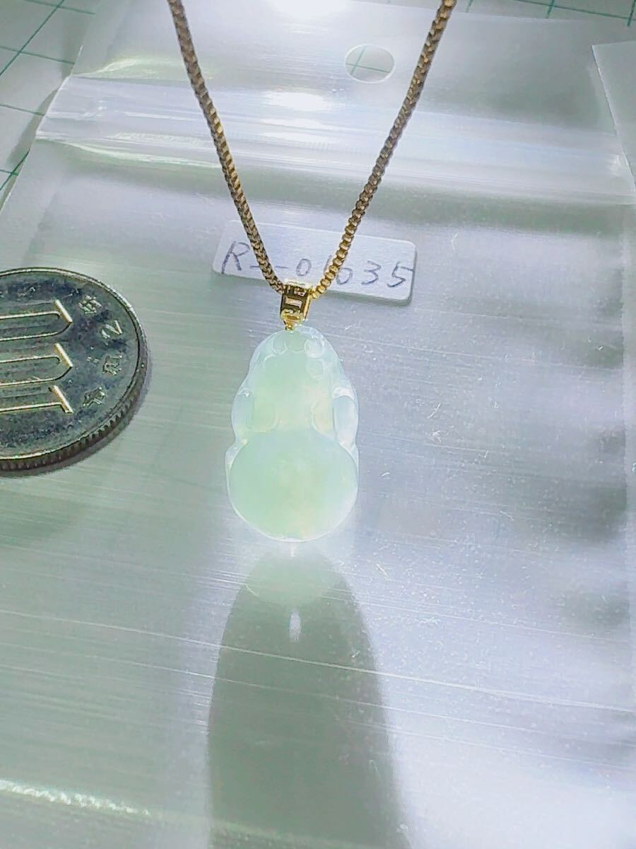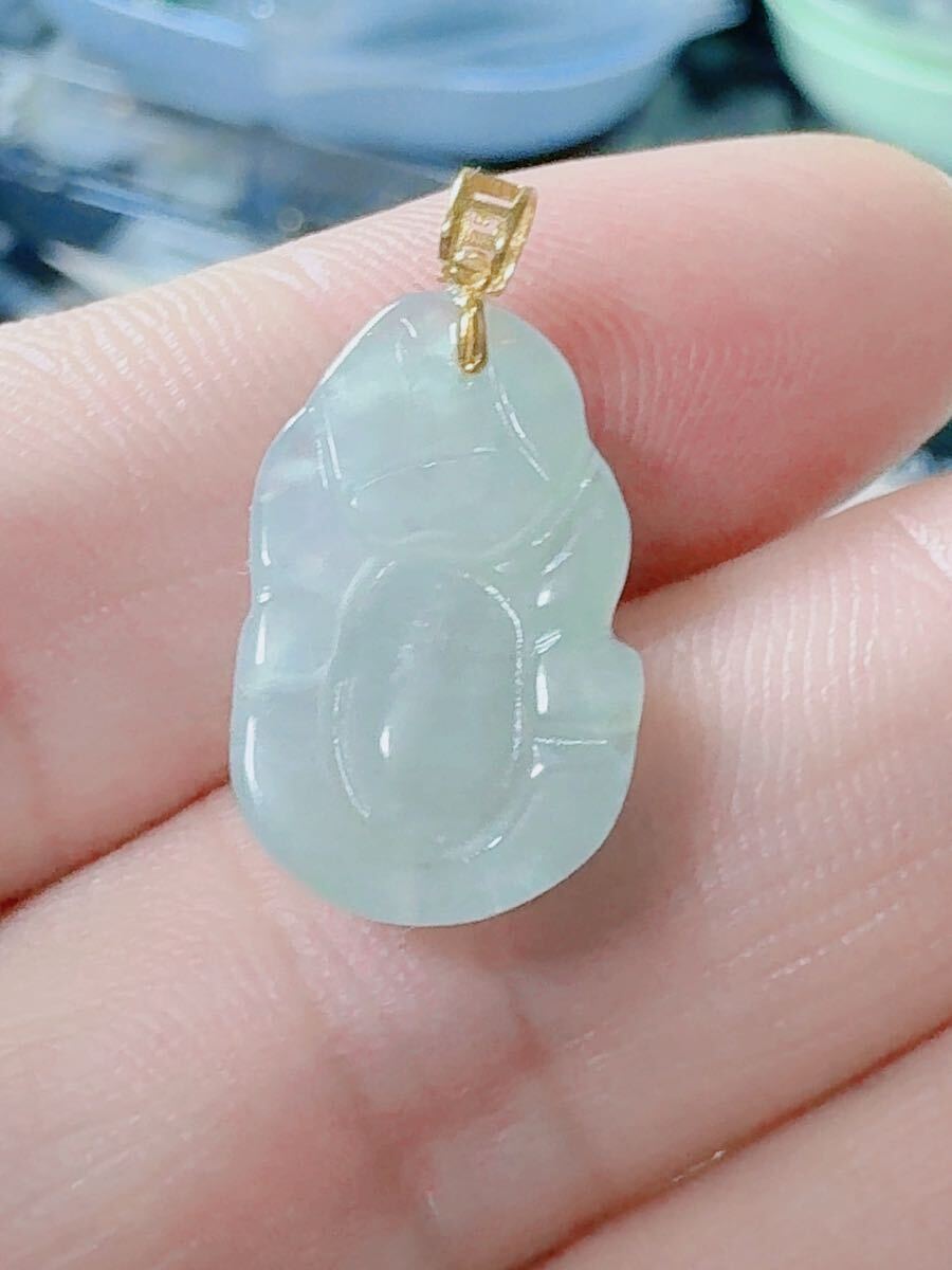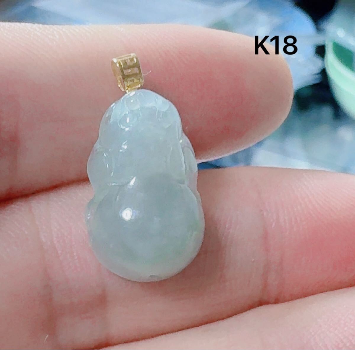 R2-01635天然本翡翠《本物保証》 薄ブルー色 翡翠 ミャンマー産 貔貅ペンダント K18 一点物 希少 縁起物 お守り パワーストーン