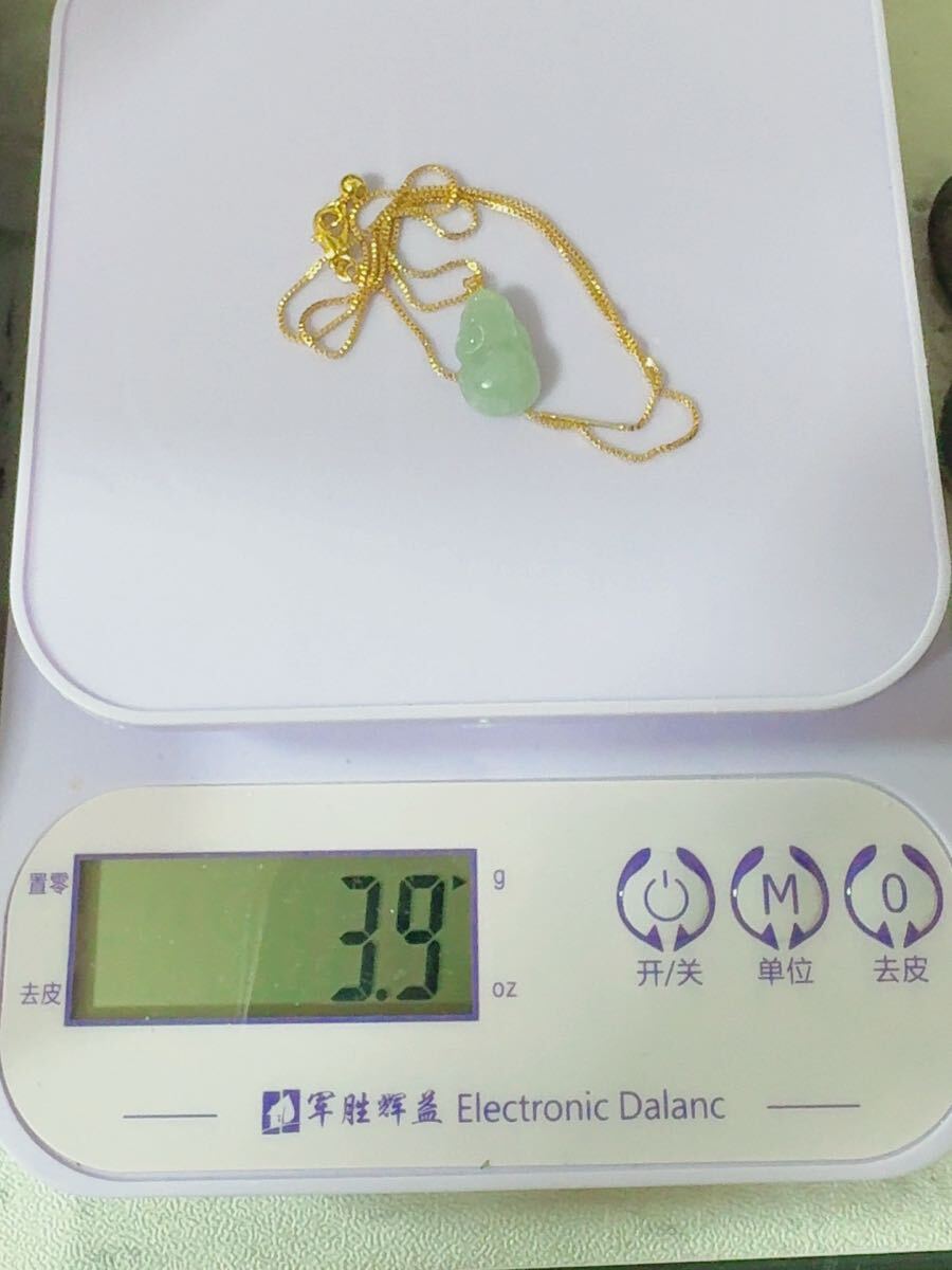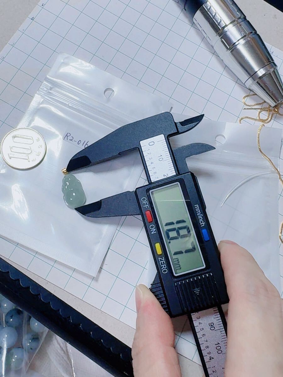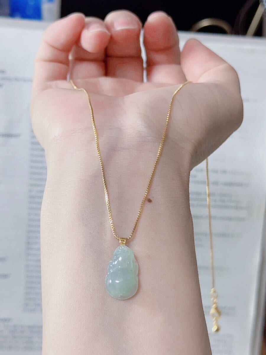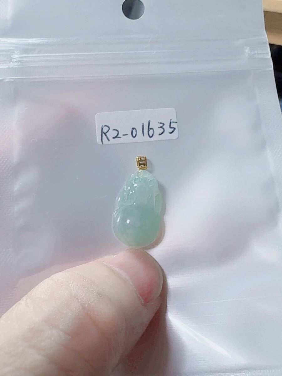 R2-01635天然本翡翠《本物保証》 薄ブルー色 翡翠 ミャンマー産 貔貅ペンダント K18 一点物 希少 縁起物 お守り パワーストーン