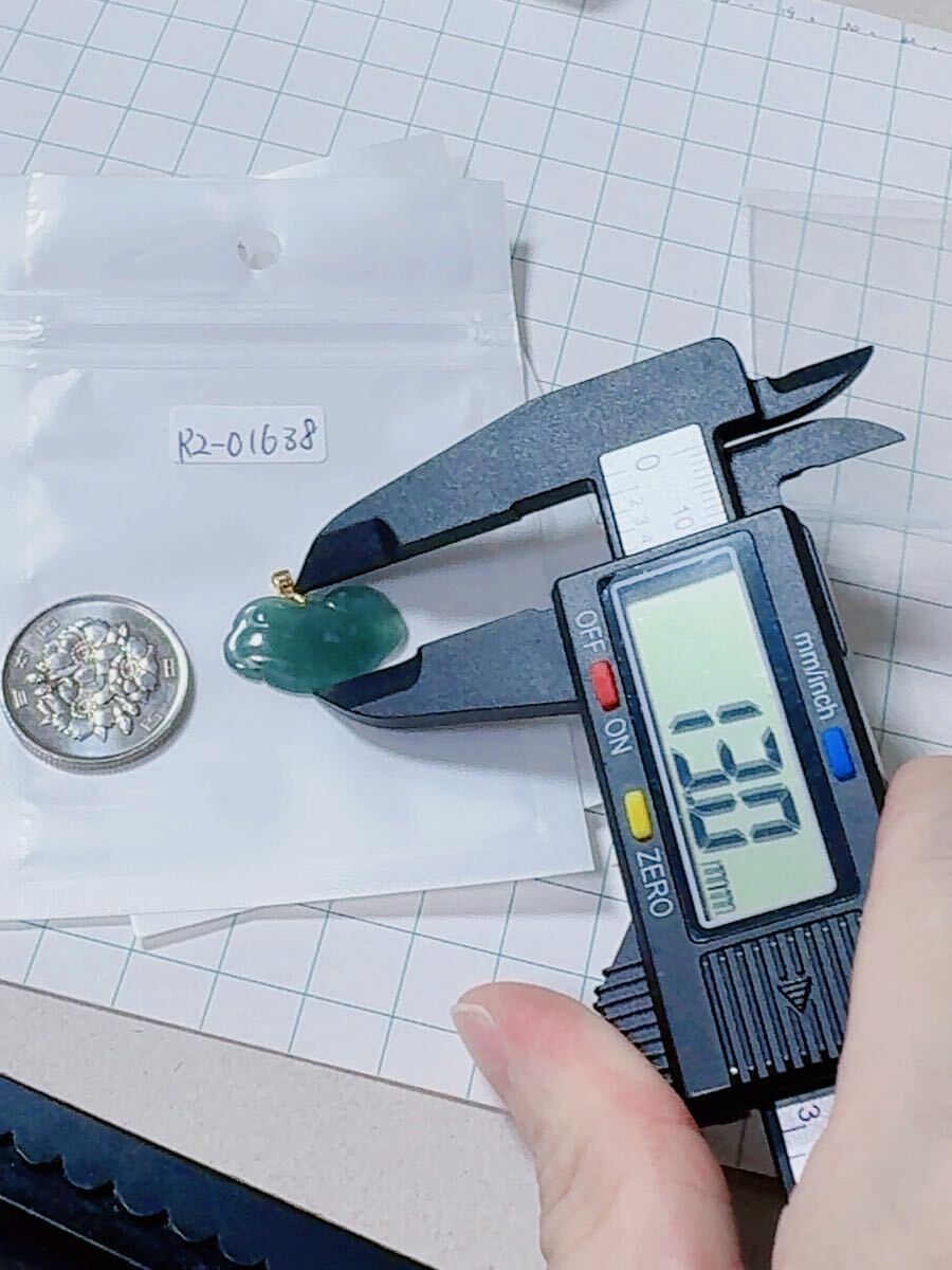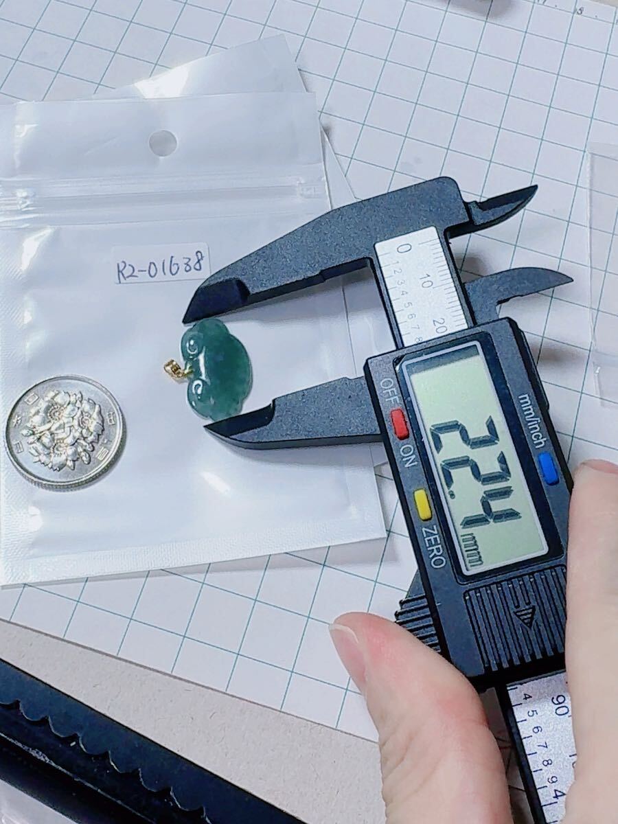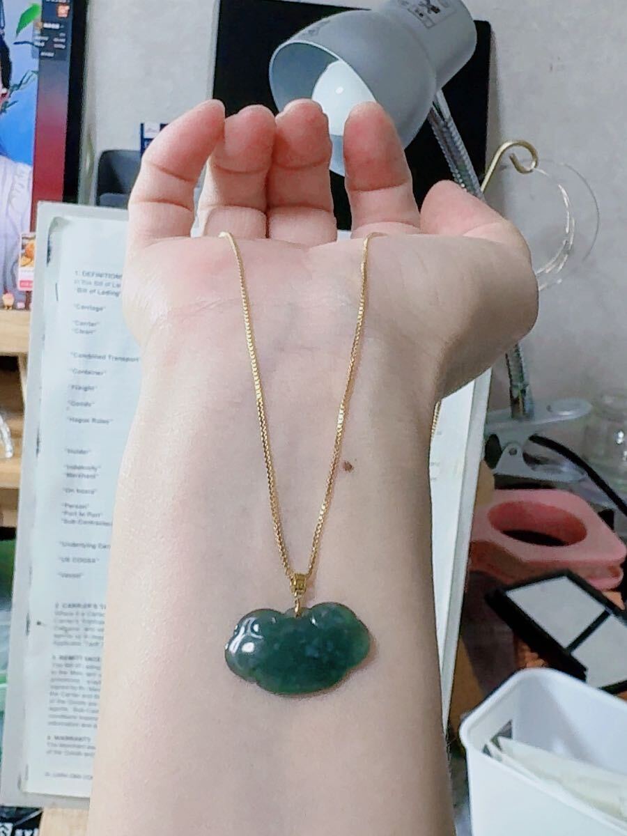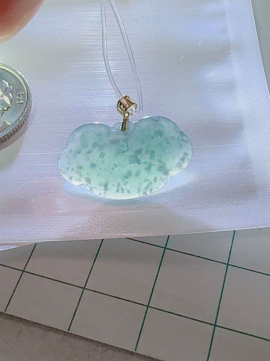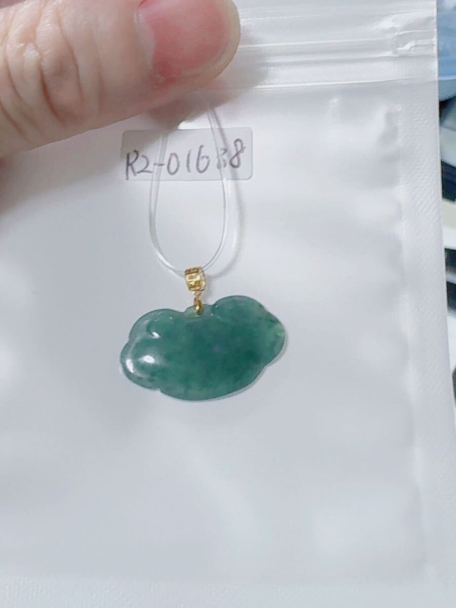 R2-01638天然本翡翠《本物保証》藍水翡翠 ミャンマー産 「祥雲」ペンダント K18 一点物 希少 縁起物 お守り パワーストーン
