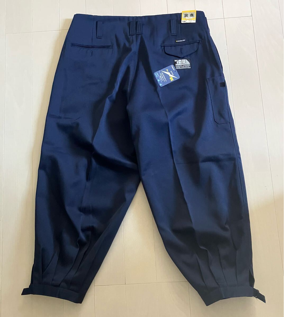 素人採寸ですが、ウエスト100cm、股上34cm、ワタリ37cm、股下68cm、裾幅18cm〜になります。