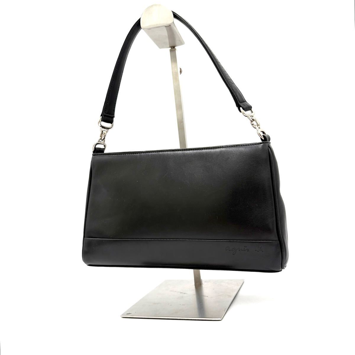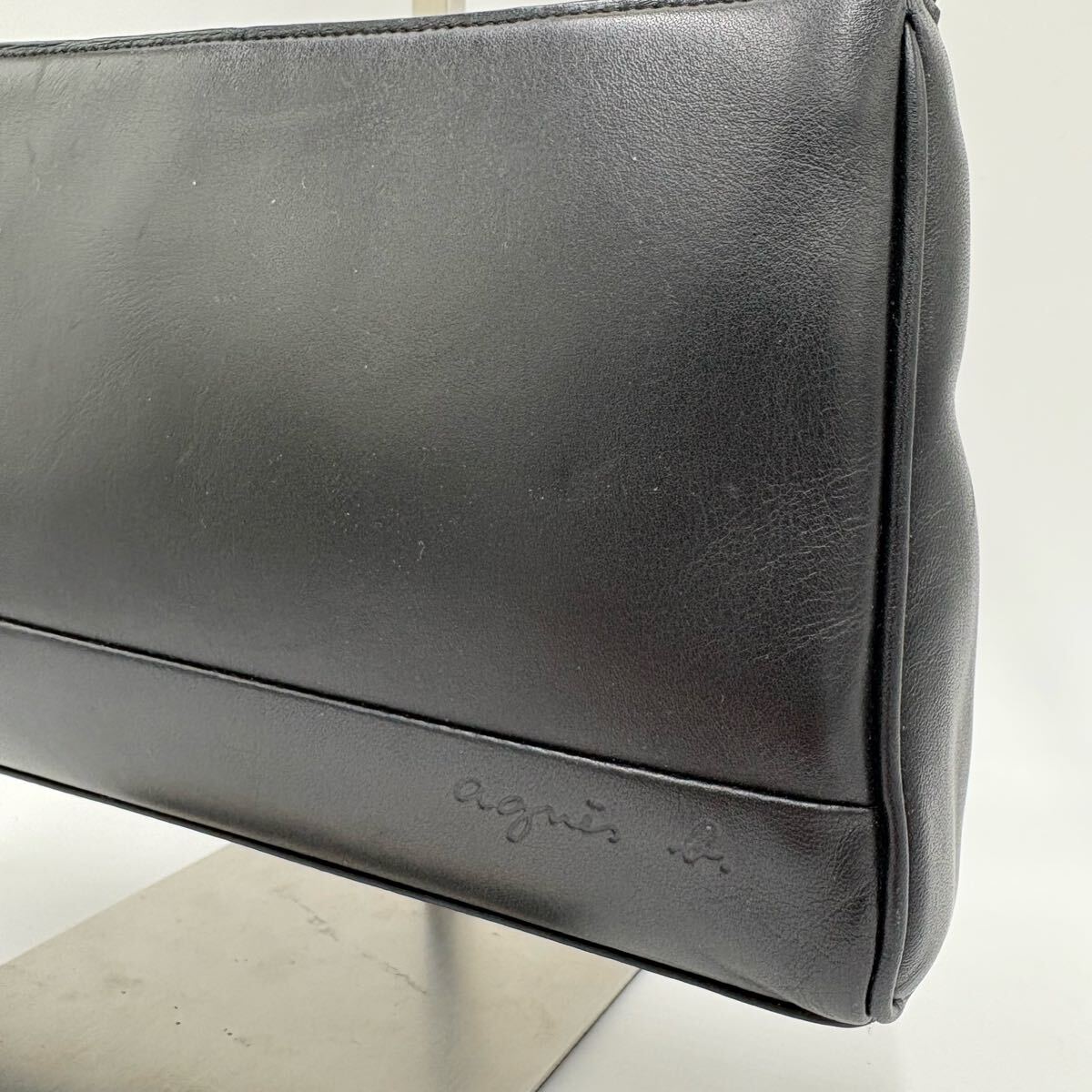 I ■ 日本製 '洗練されたデザイン' agnes b. アニエスベー LEATHER フォーマル ハンドバッグ 手提げ鞄 レディース 婦人鞄 カバン 黒系