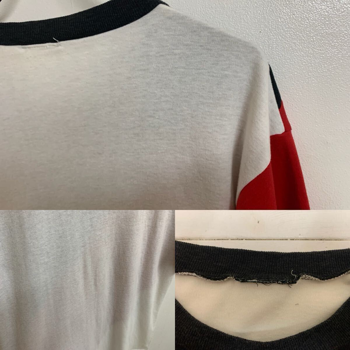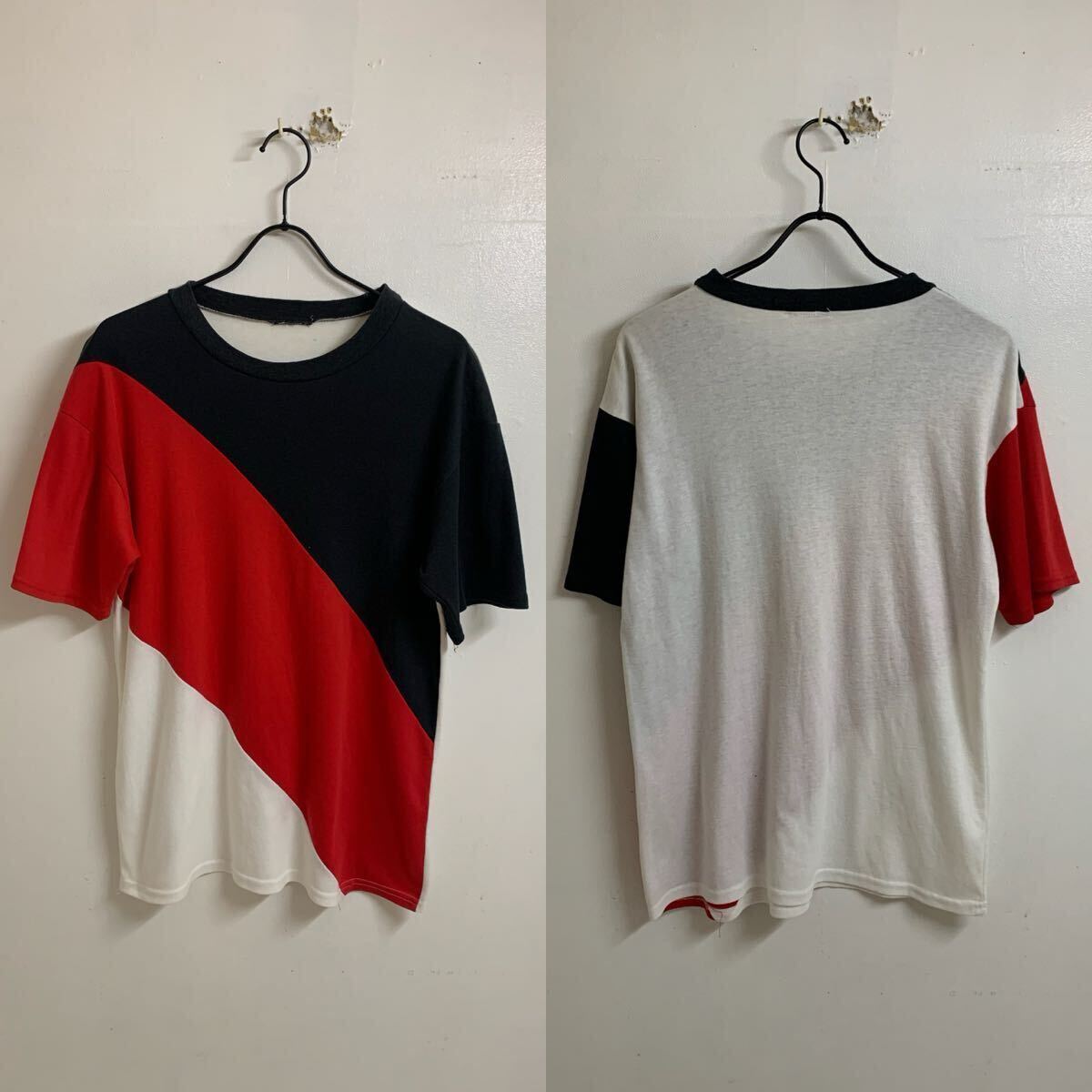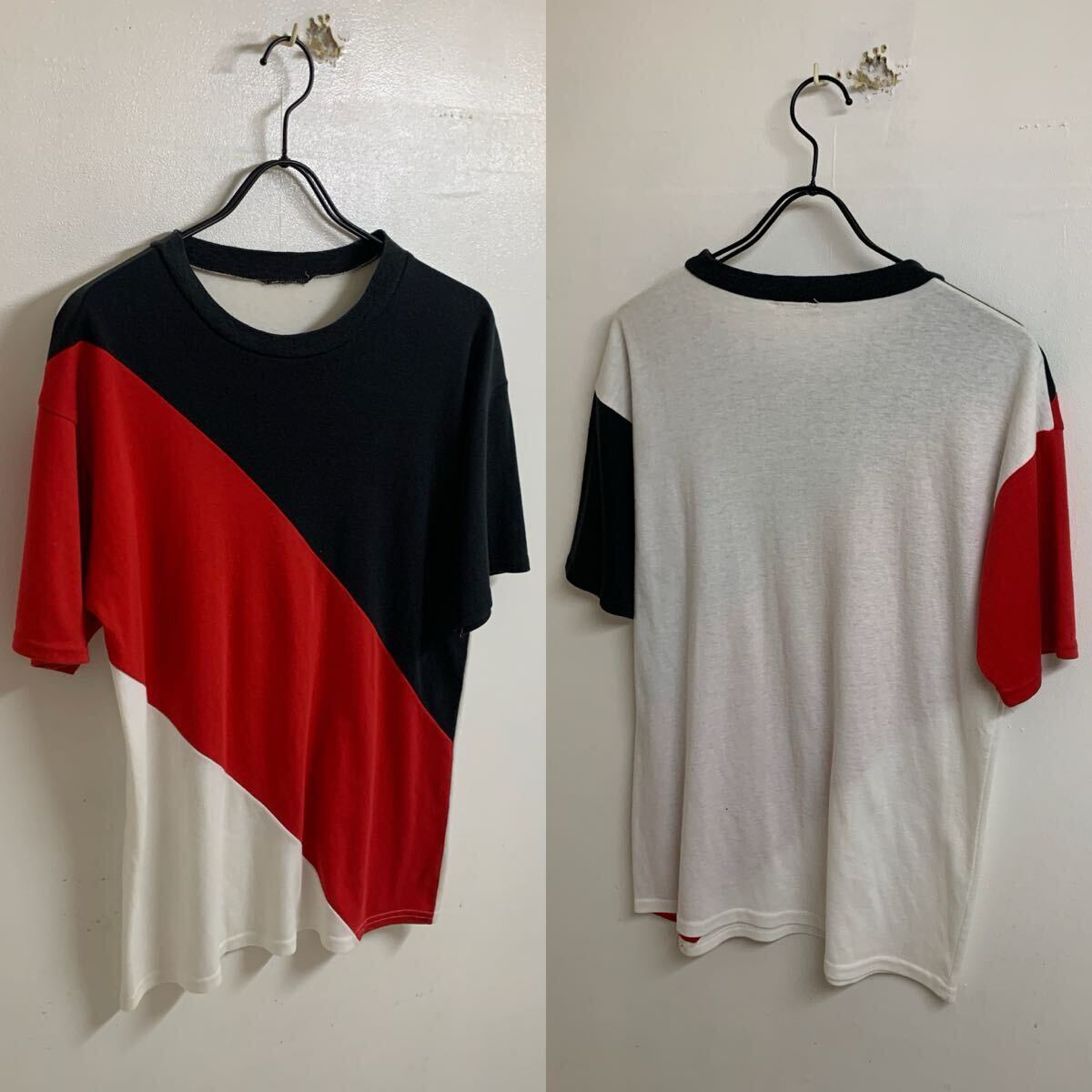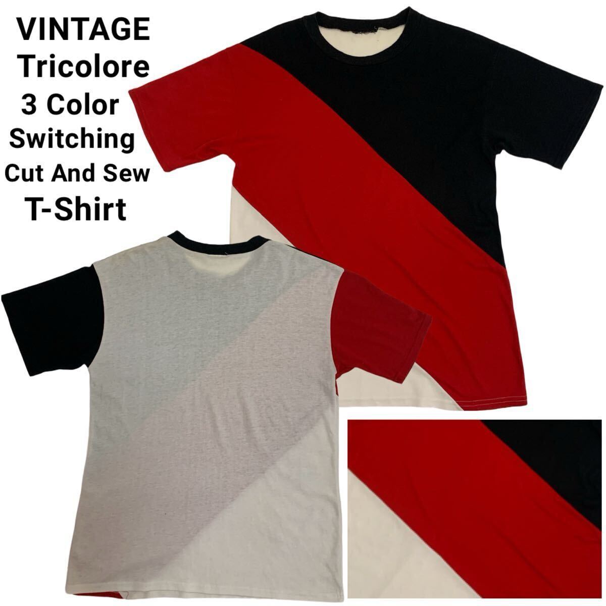 【MEMO】VINTAGE ヴィンテージ トリコロール 3色カラー切替 半袖カットソー 半袖Tシャツ トップス ブラック レッド ホワイト M〜L位 アーカイブです。雰囲気もいいですし、オススメです。アーカイブ 送料込み